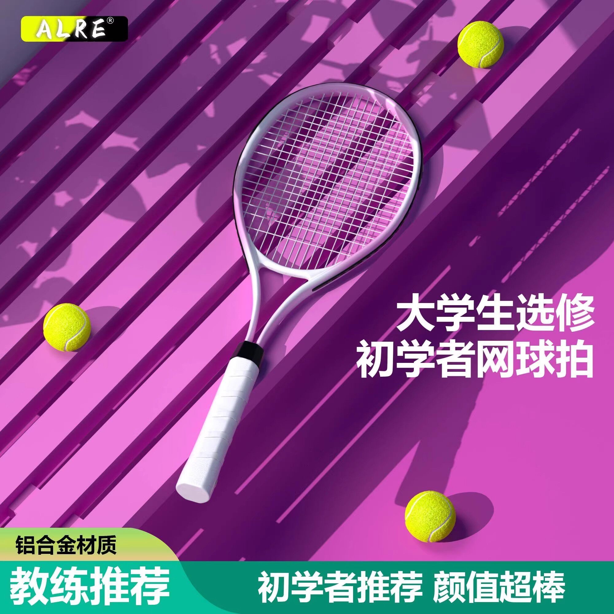 ALRE网球拍初学者入门训练拍专业比赛专用超轻型大拍面高回弹网球