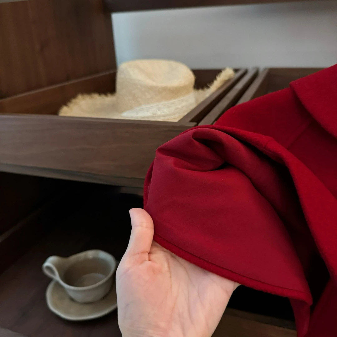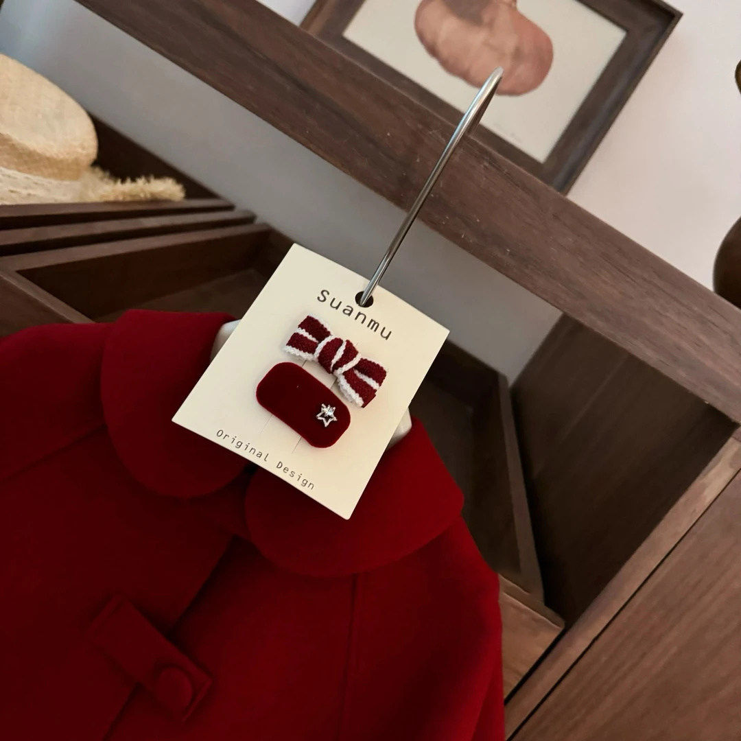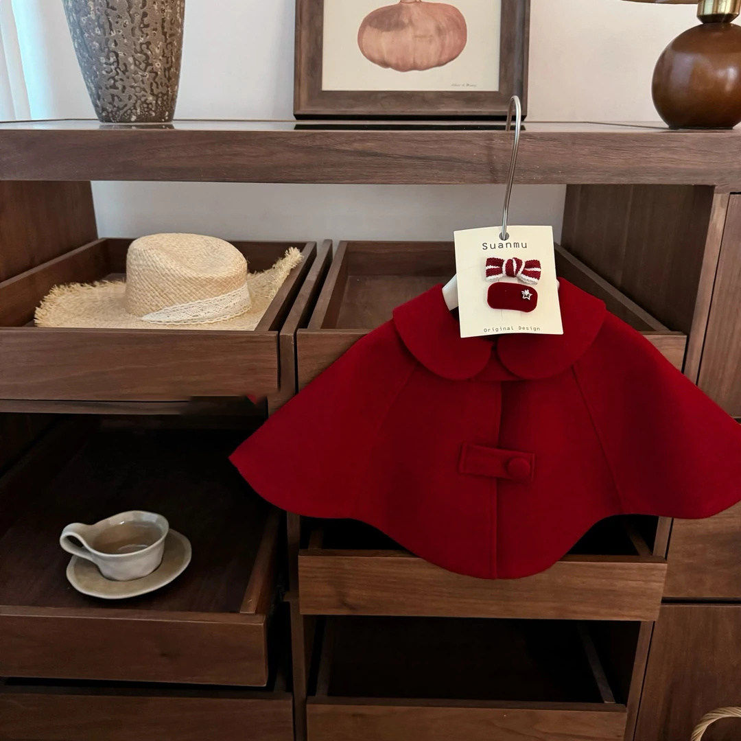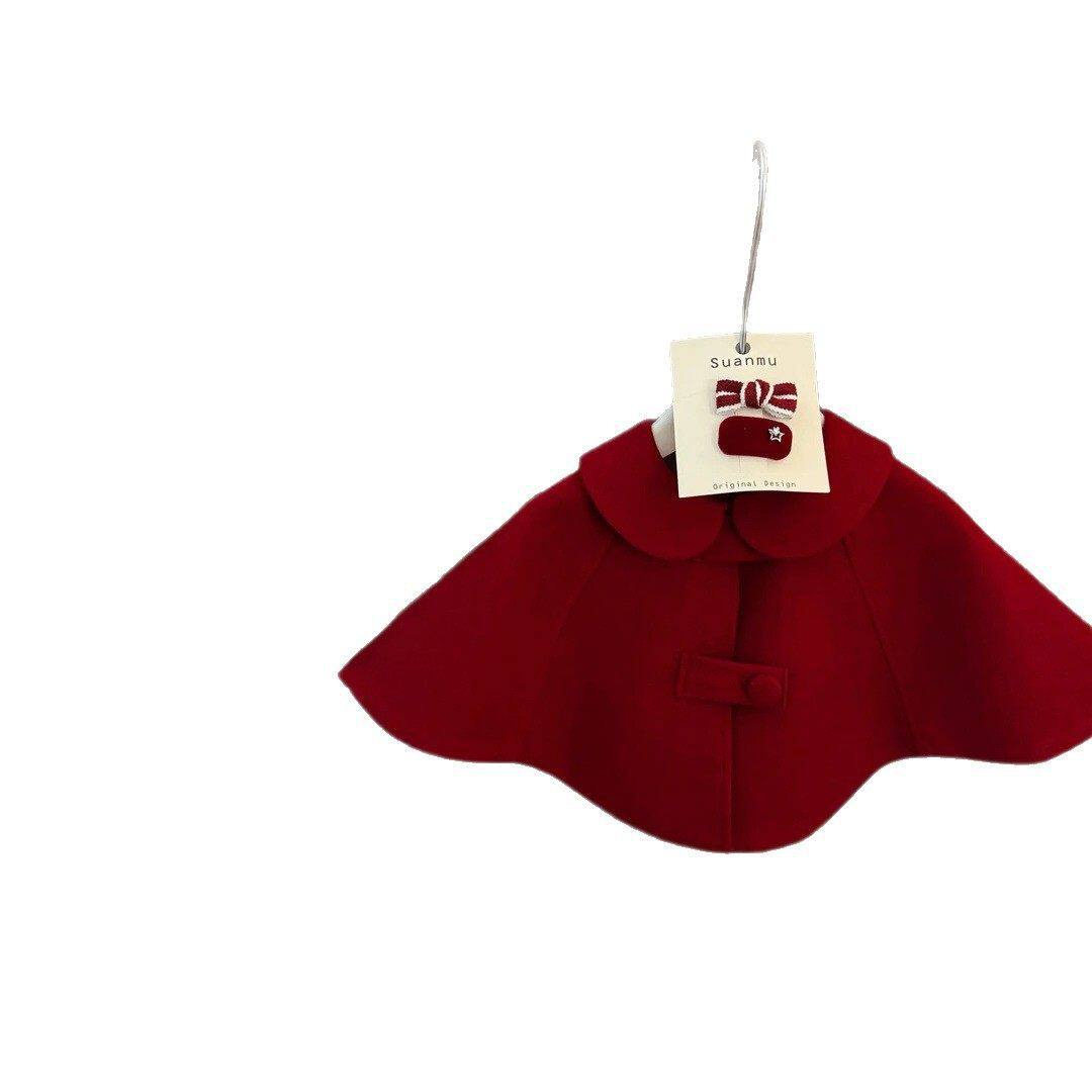 拜年服女童服装儿童红色双面毛呢斗篷披风冬季洋气女宝宝外套短款