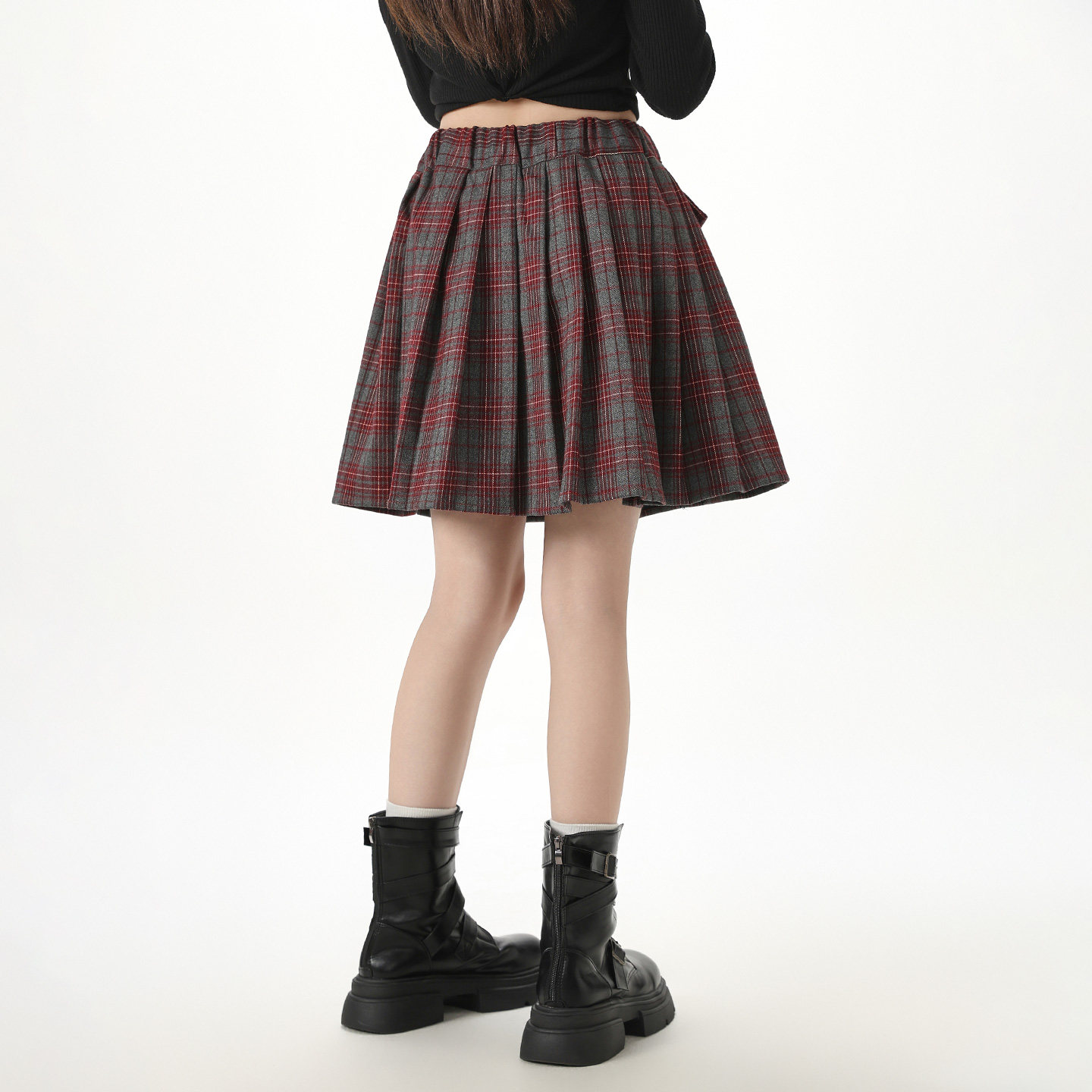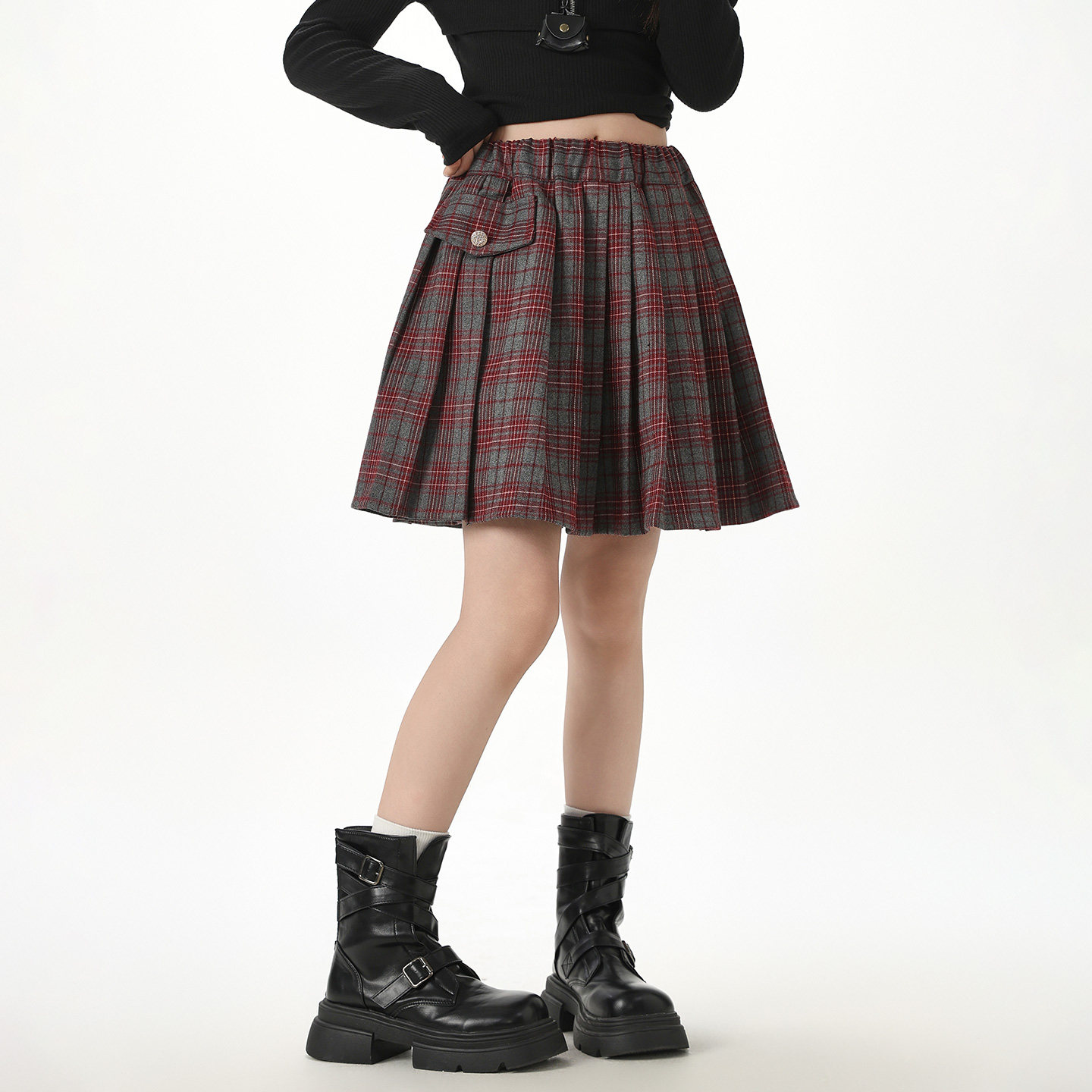 偏胖女童百褶裙儿童秋冬加肥加大码宽松格子半身裙大童防走光裙子