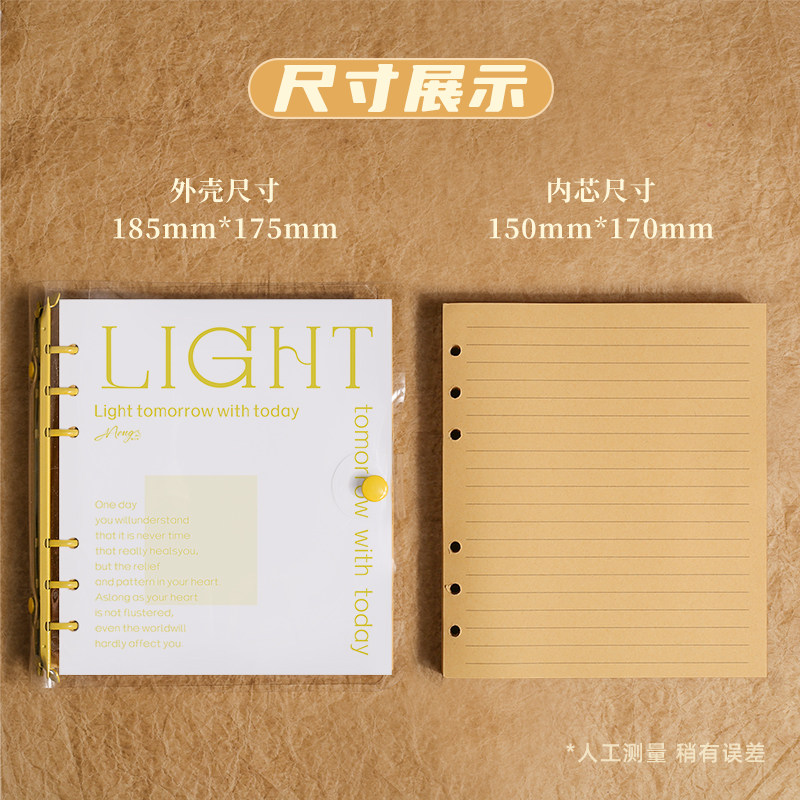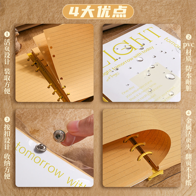 新款方形水晶原木牛皮纸活页笔记本本子加厚高颜值横线活页本软皮皮面记事本空白日记本不硌手可拆外壳记事本
