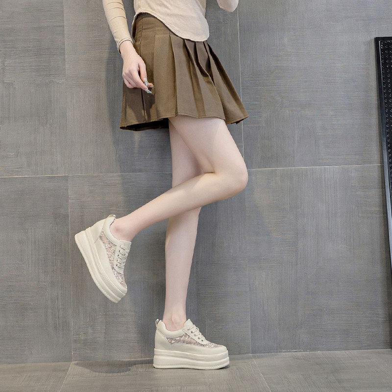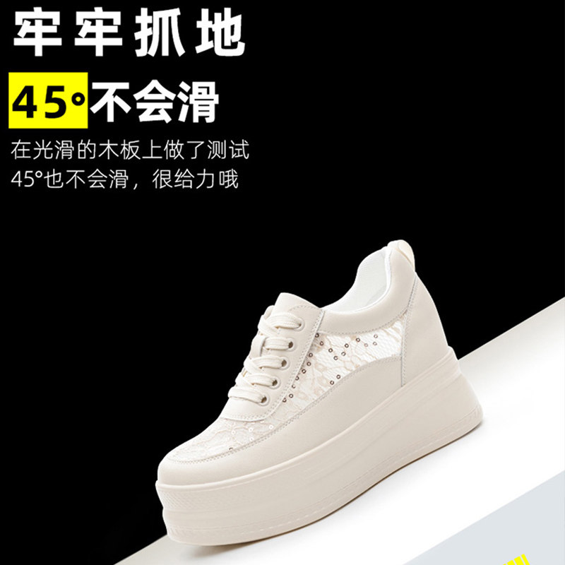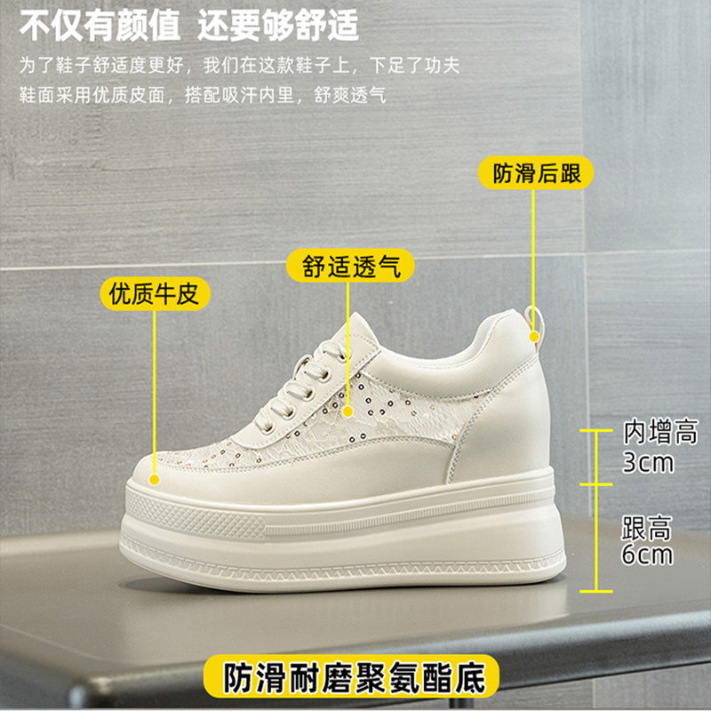 圣恩熙 洞洞鞋女款2026新款真皮百搭透气网面鞋舒适内增高小白鞋