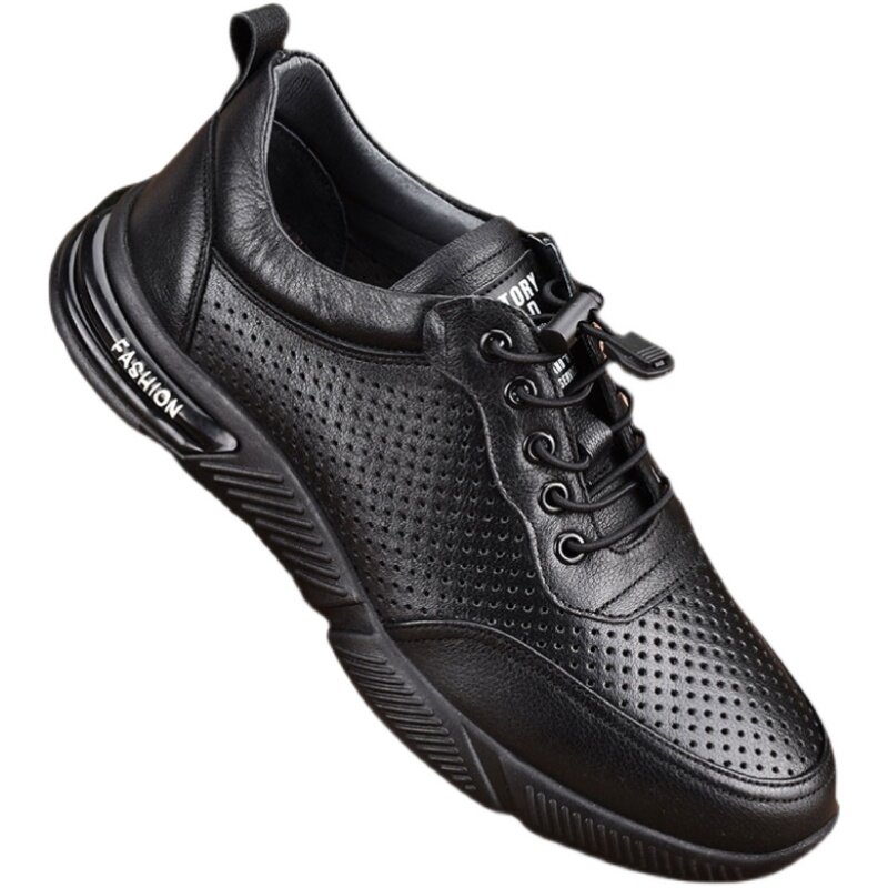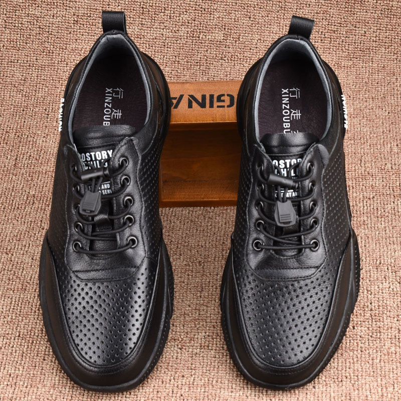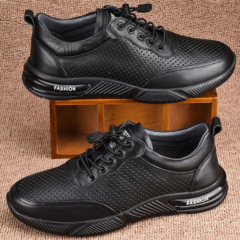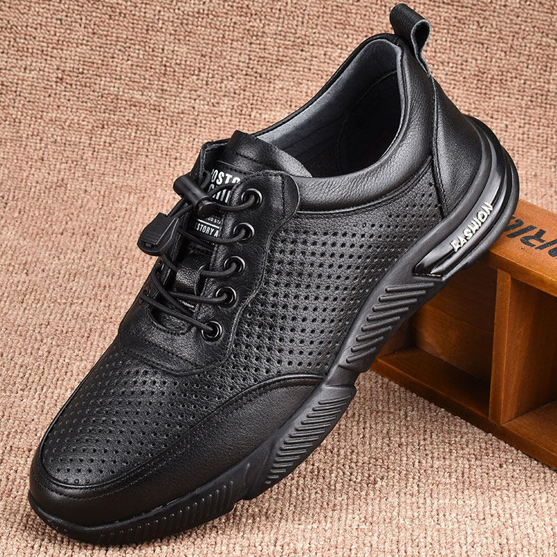 全牛皮运动鞋男真皮网眼镂空薄款打孔男鞋软底夏季透气男士休闲鞋