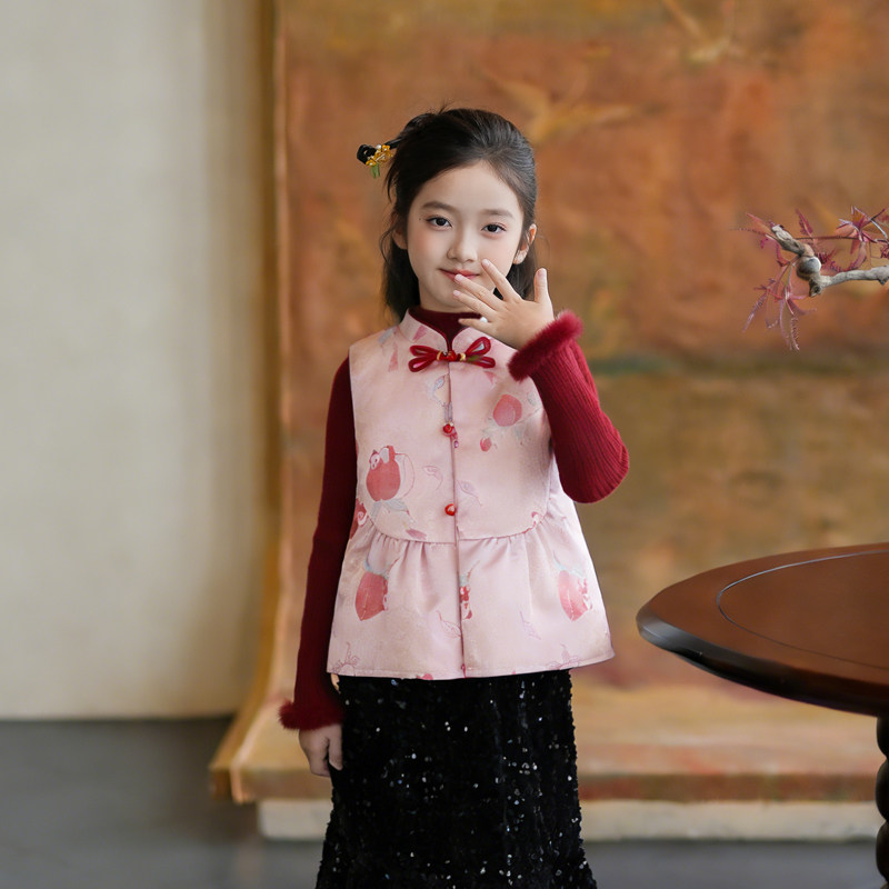 53975女童中国风马甲拜年服汉服2026春季新款儿童喜庆新年服背心