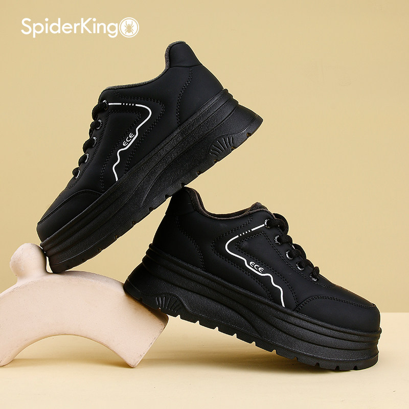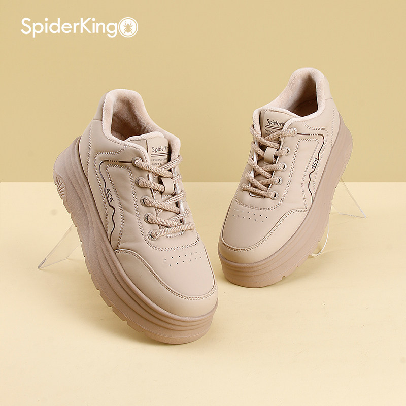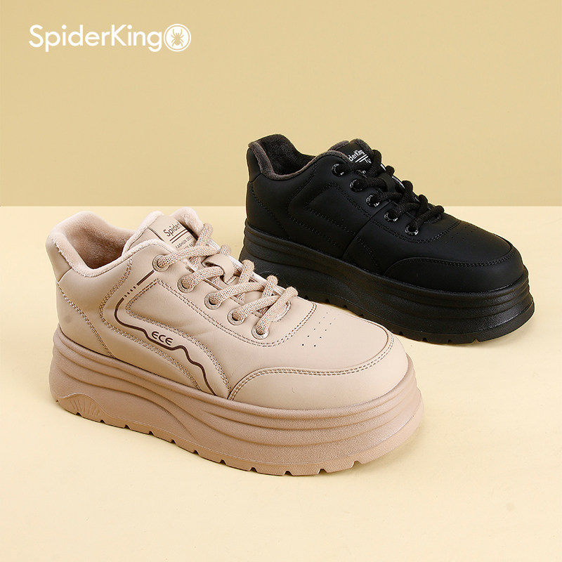 蜘蛛王高帮加绒厚底增高女鞋冬季时尚松糕底休闲板鞋轻便舒适棉鞋
