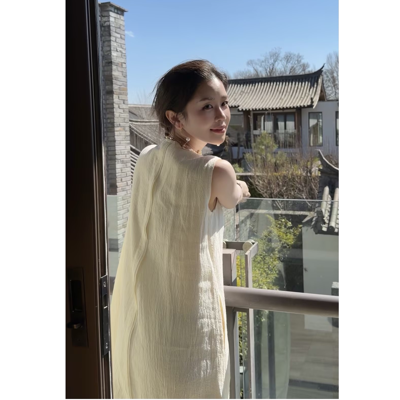 Y【叭哒不惑】白月光 亚麻气质长裙简约复古无袖连衣裙刺绣百搭