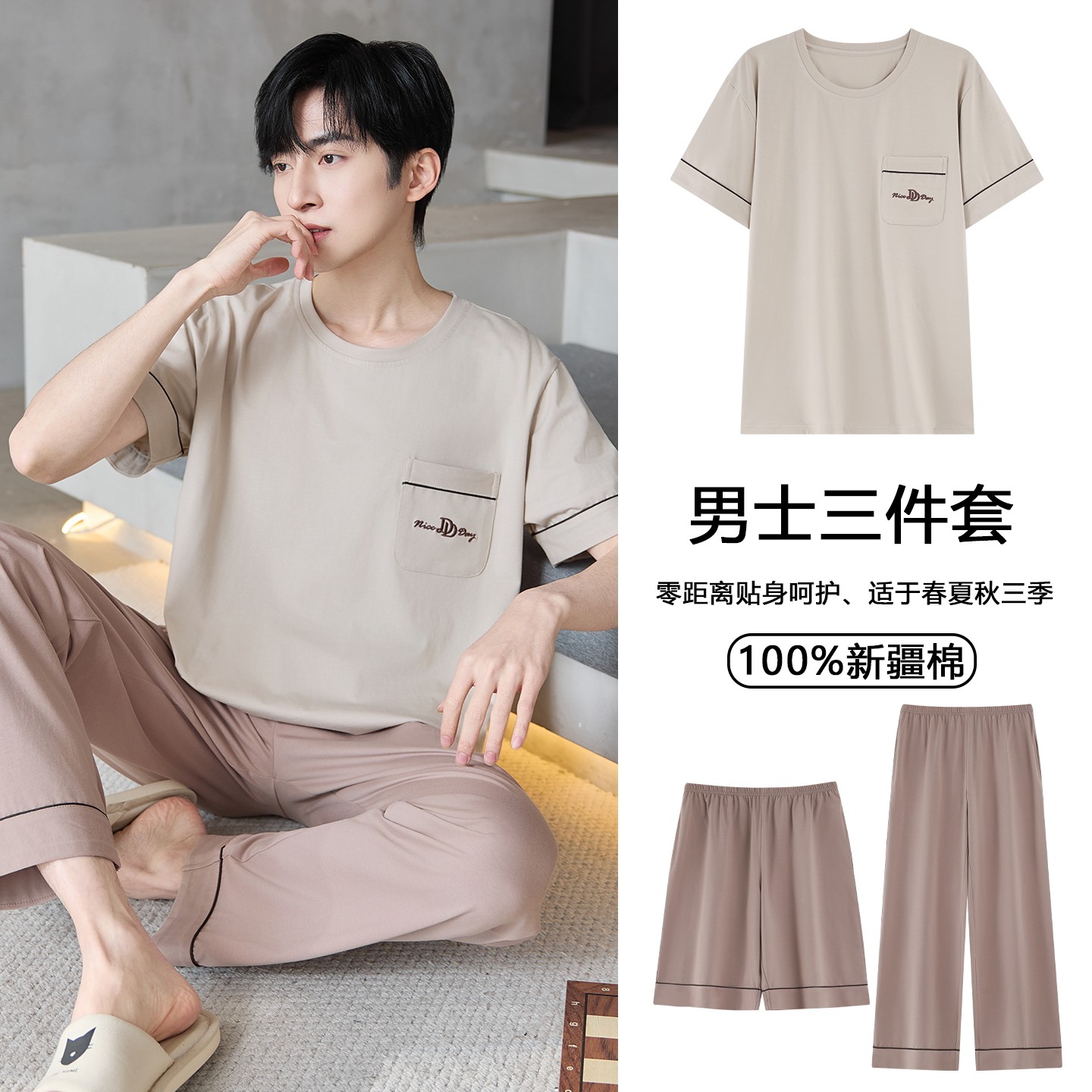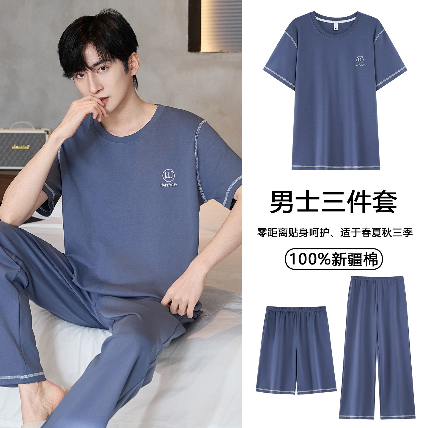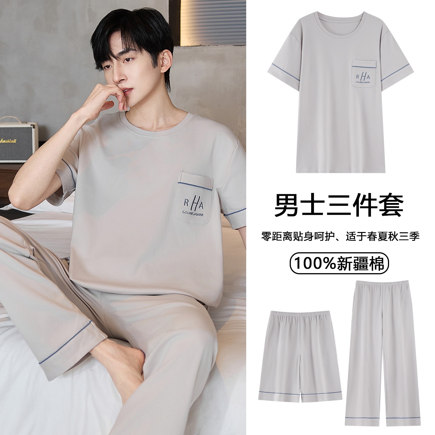 2026年新款睡衣男士夏季纯棉短袖长裤三件套休闲青少年男款家居服