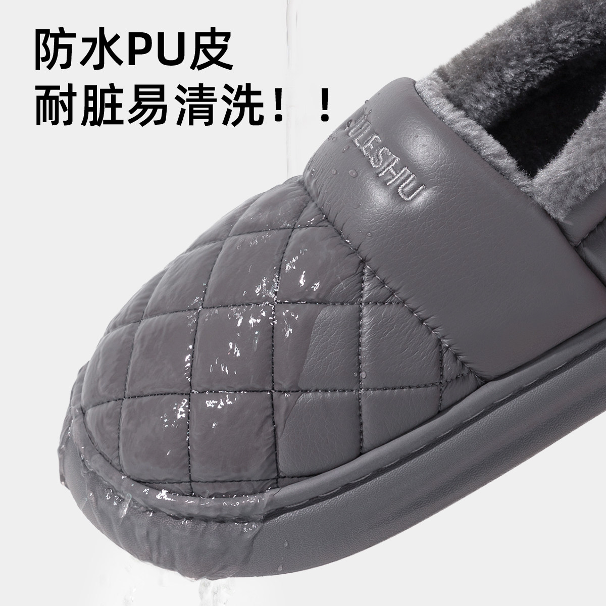 利达妮老人棉拖鞋男士秋冬季居家居包跟防水防滑男款皮面棉鞋女款