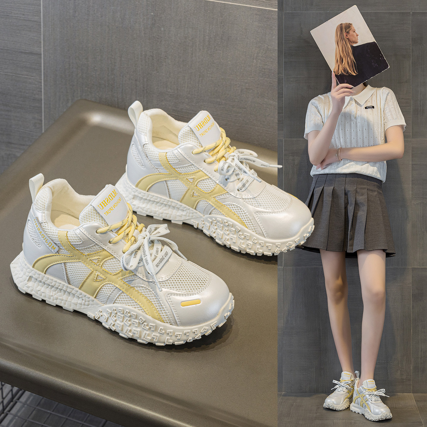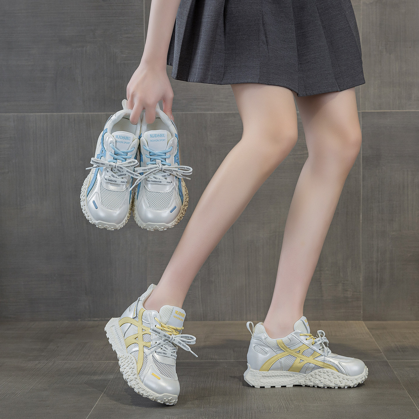 内增高8CM网面阿甘鞋女2026春夏新款轻便透气厚底休闲运动德训鞋
