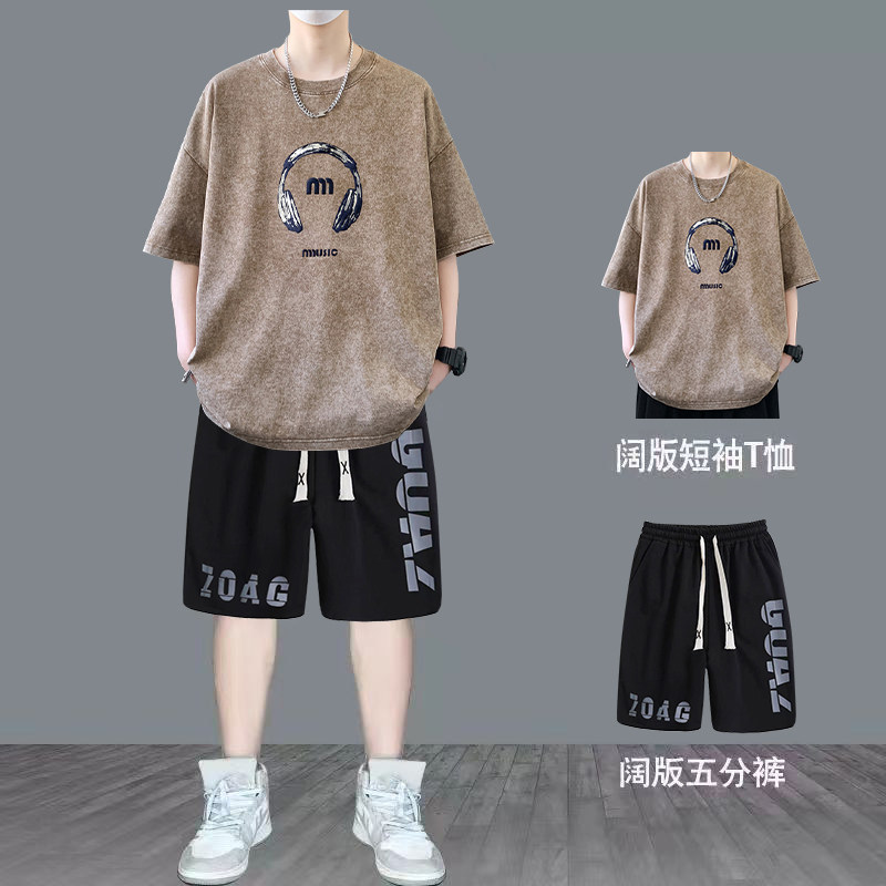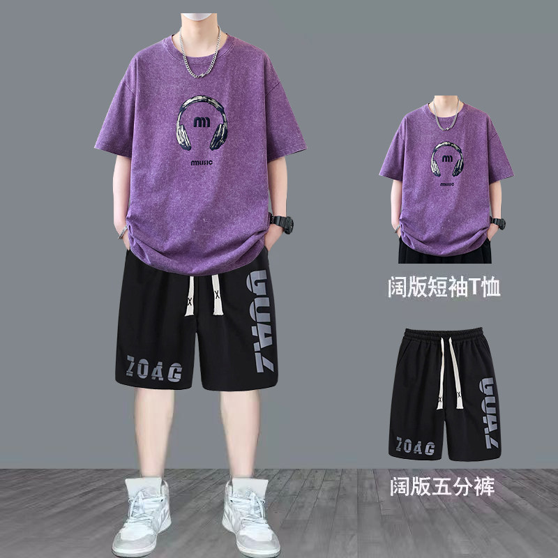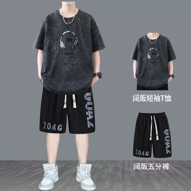 纯棉短袖t恤套装2026新款男夏季青少年学生潮帅气休闲运动两件套