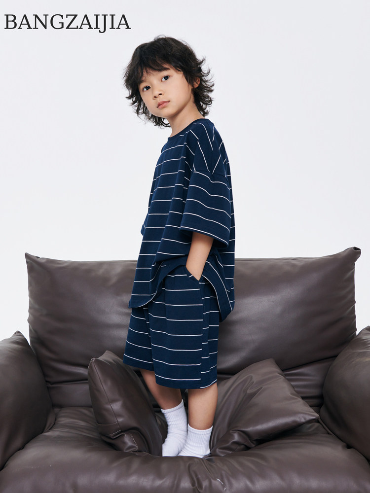 邦仔家男童睡衣夏季短袖儿童中大童男孩家居服纯棉套装夏天薄款