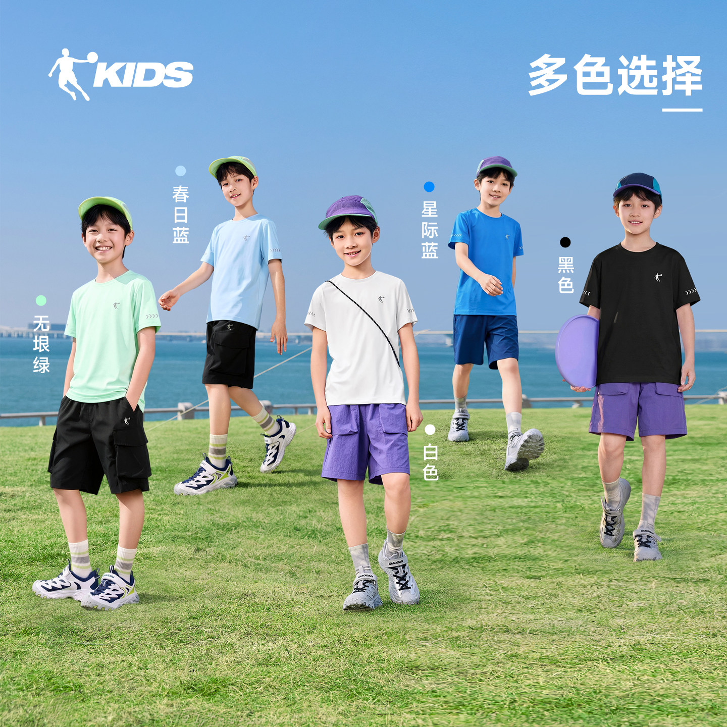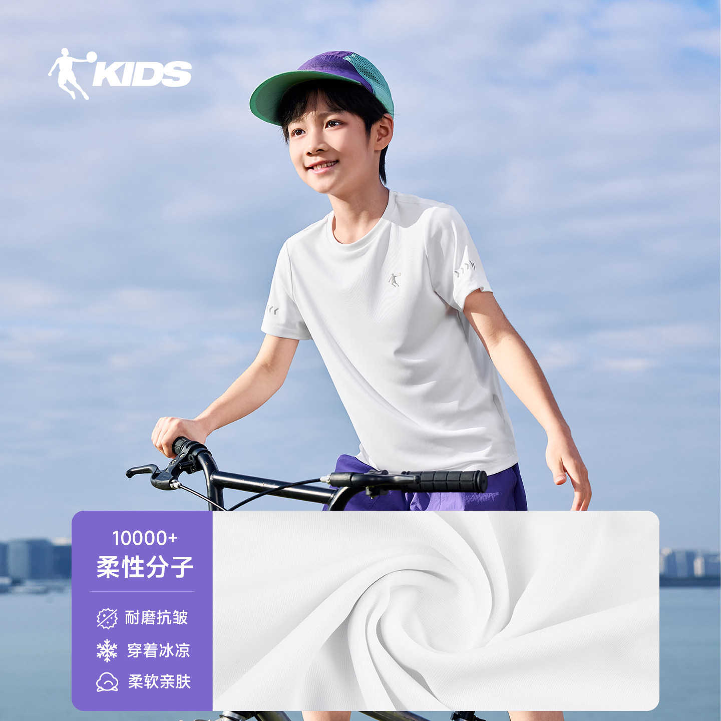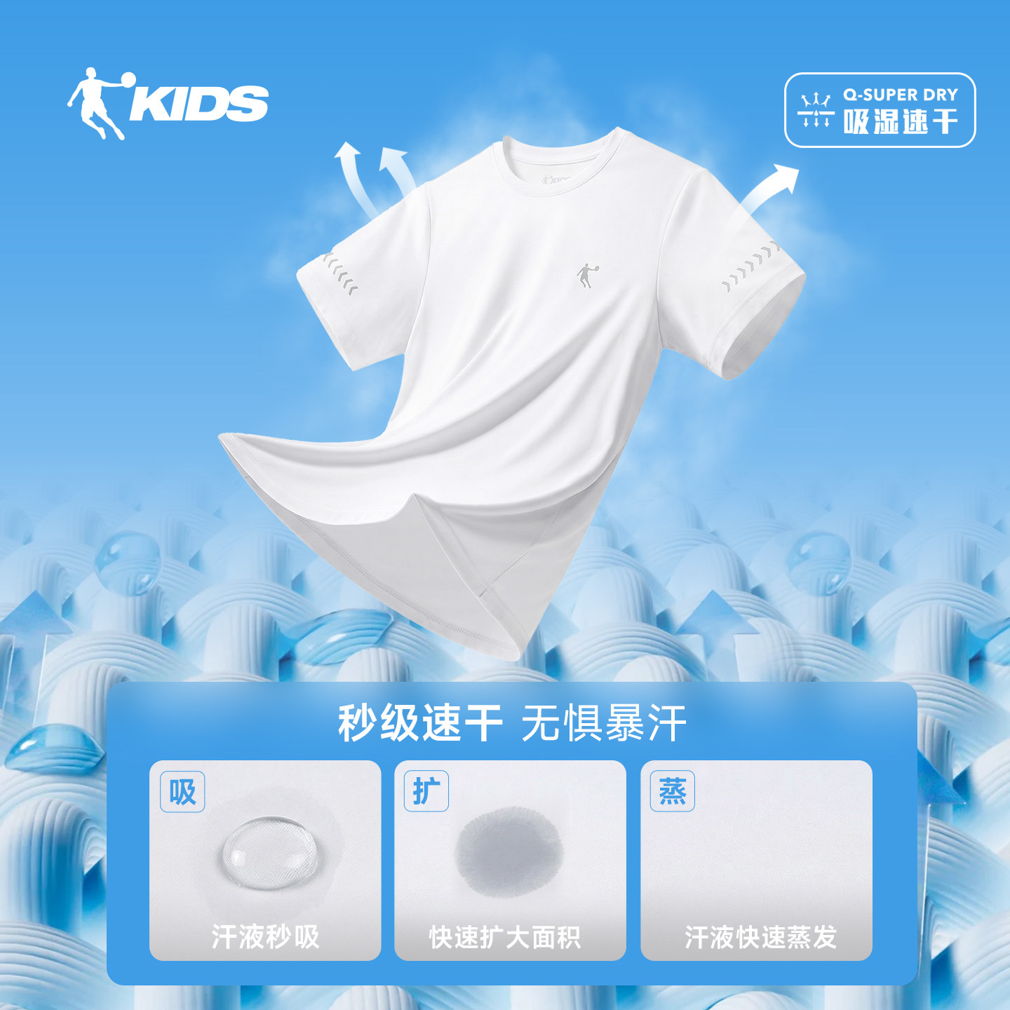 乔丹童装男童速干短袖t恤2026新款大童运动半袖白色上衣儿童夏装