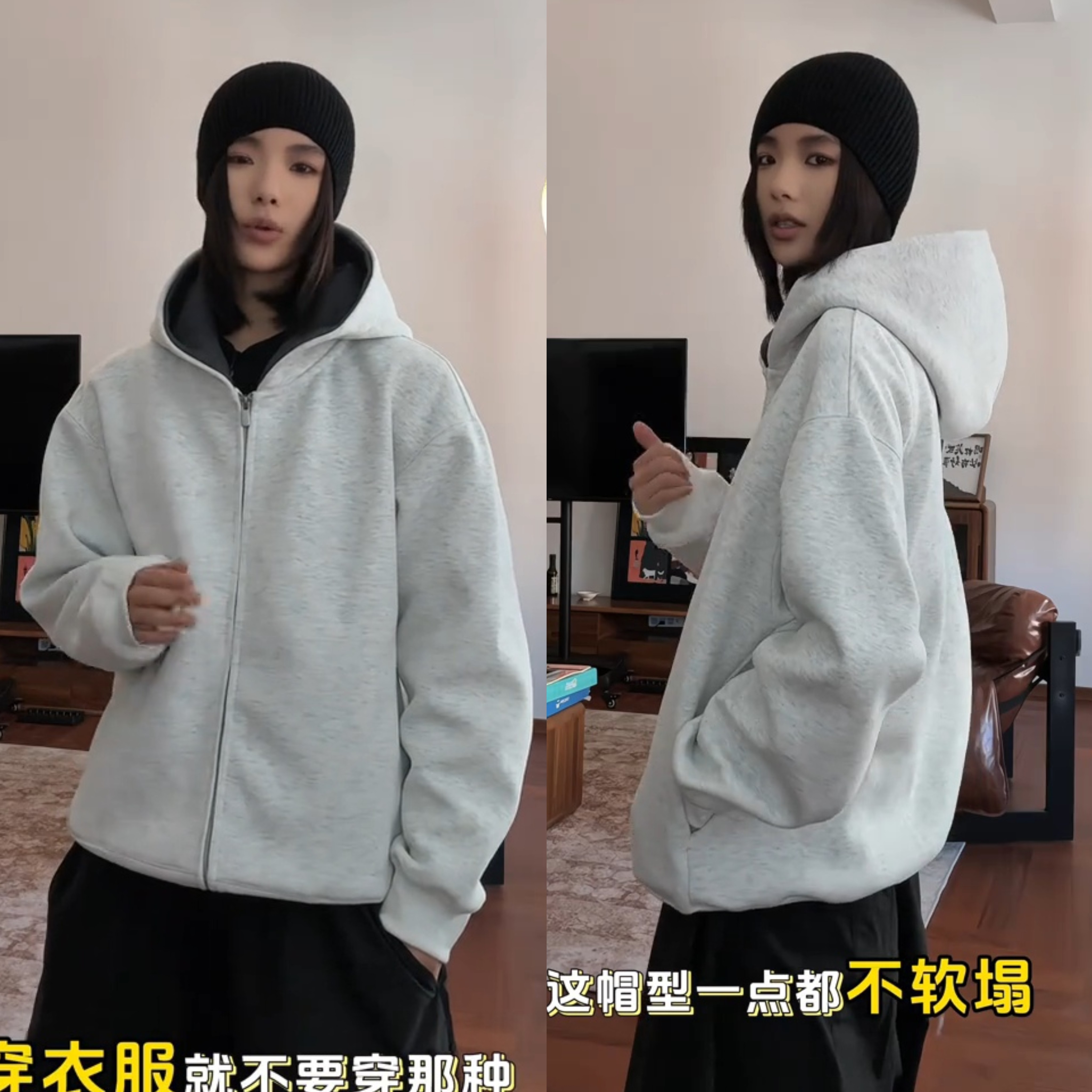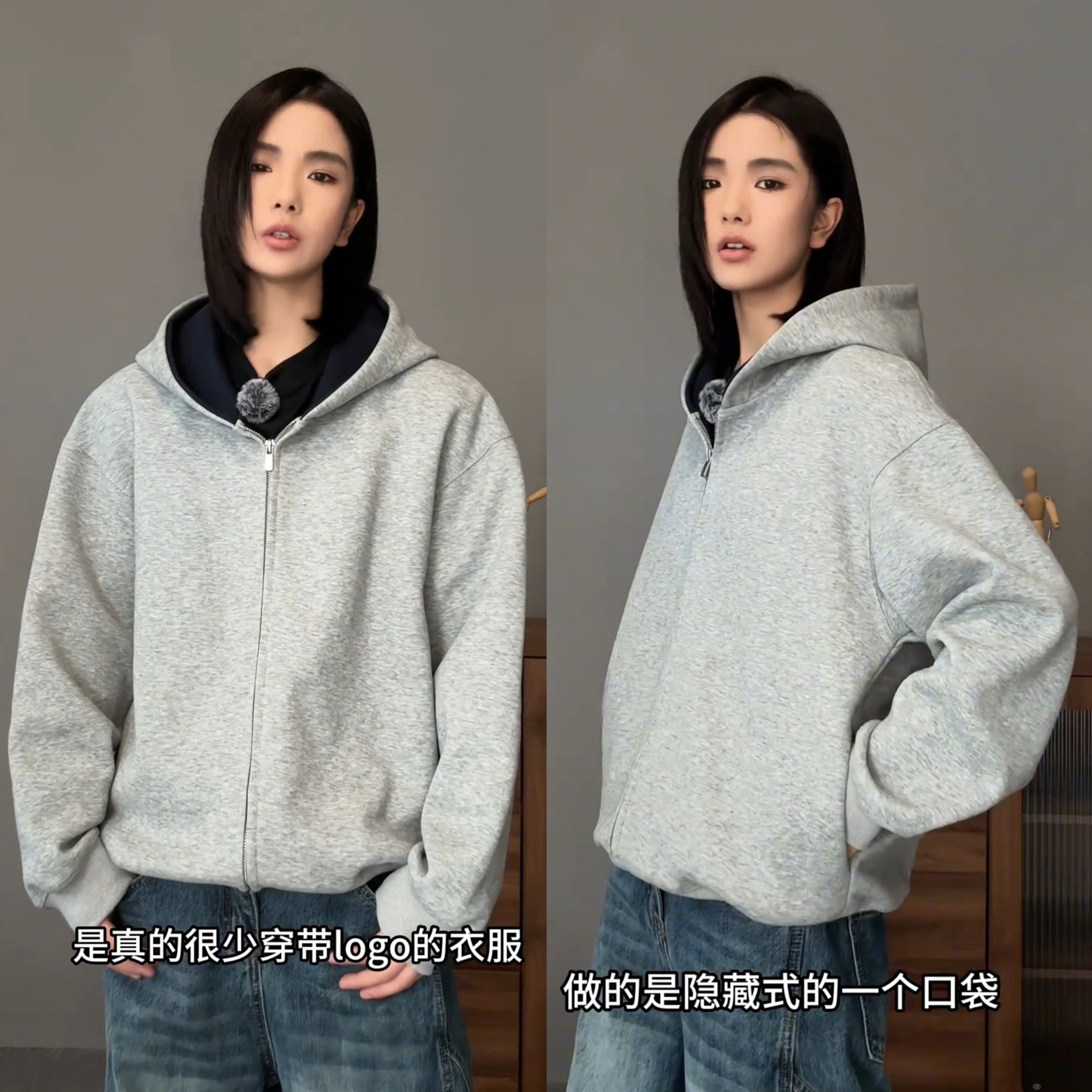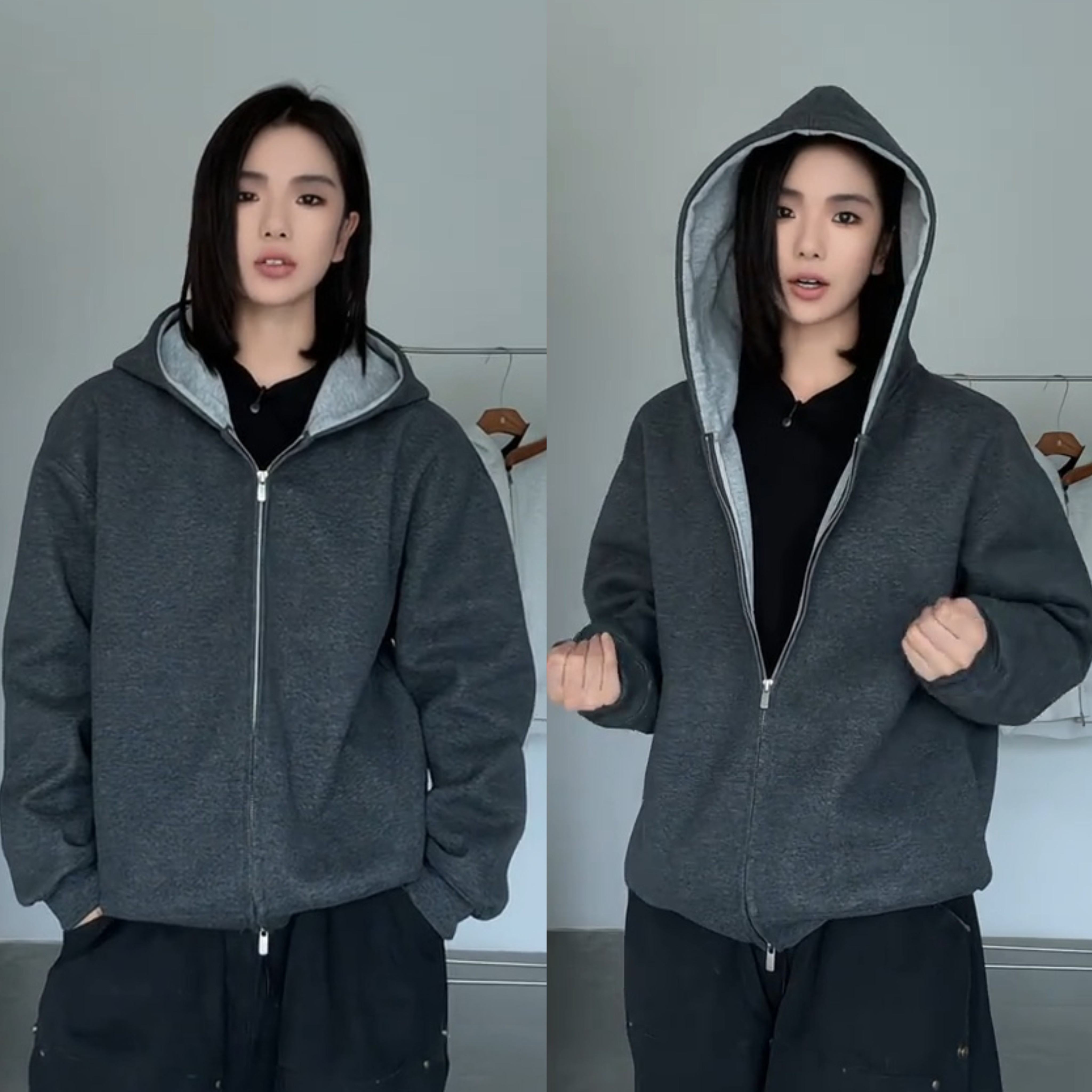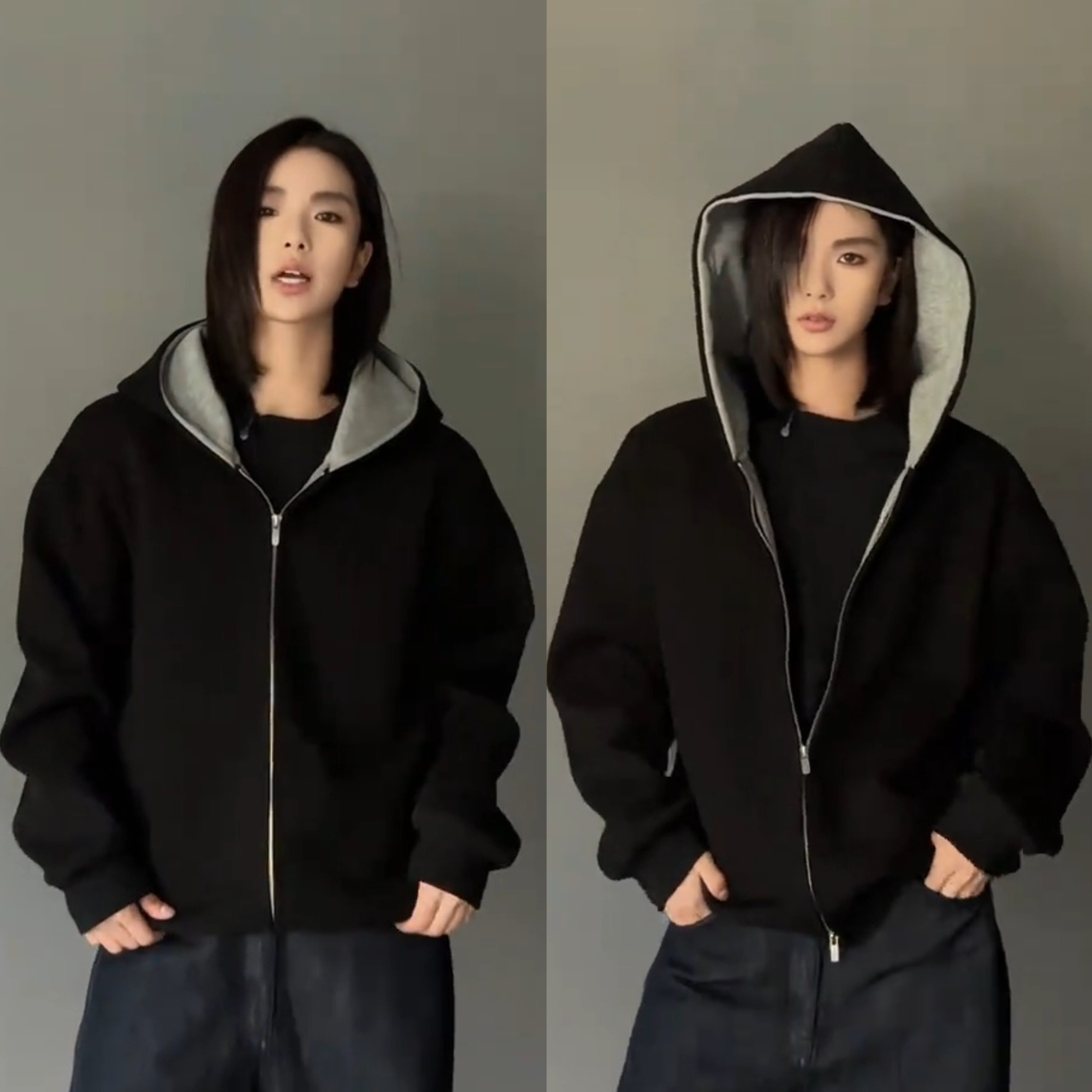 春秋新款重磅拼色连帽开衫卫衣男高级感简约时尚宽松百搭休闲外套