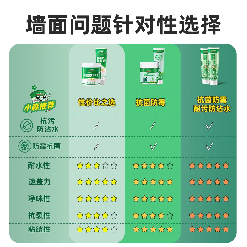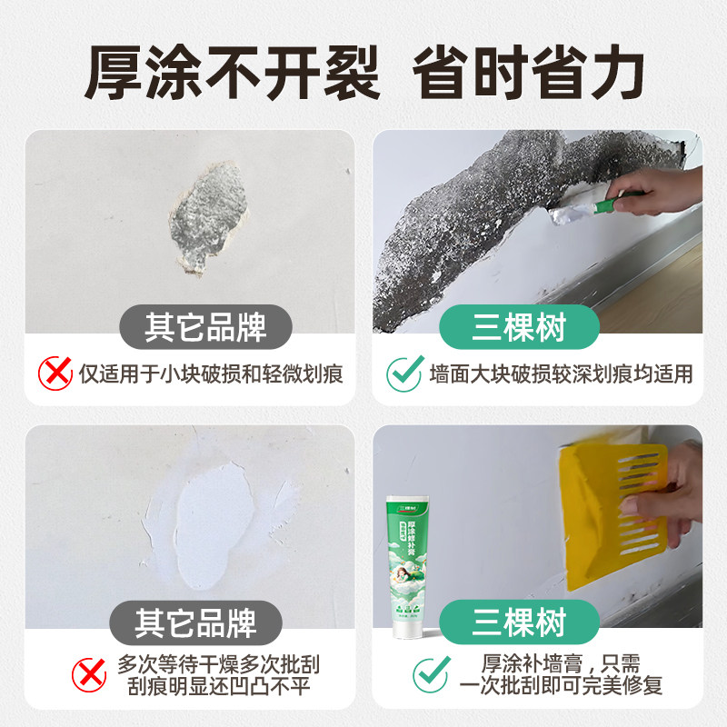 三棵树补墙膏漆墙面体内修补复家用白色自喷雾神器防水潮霉腻子膏