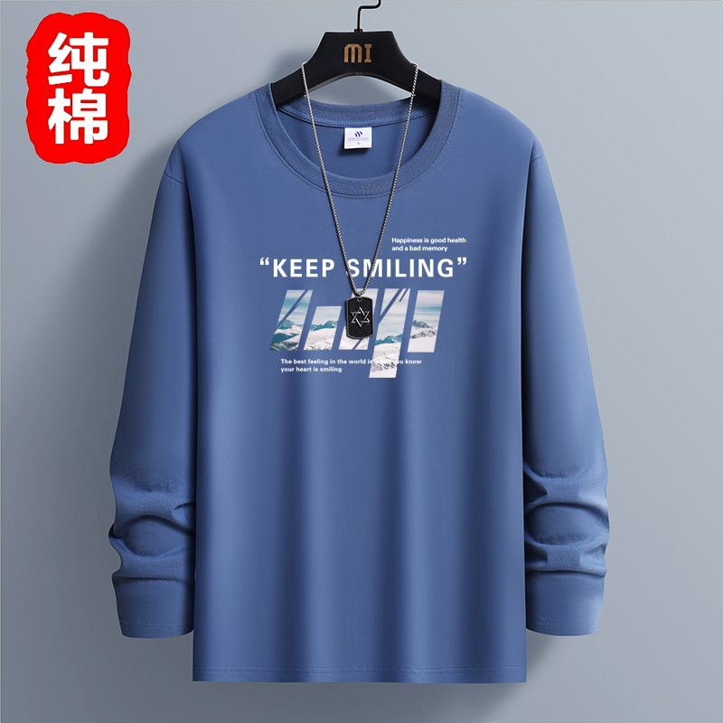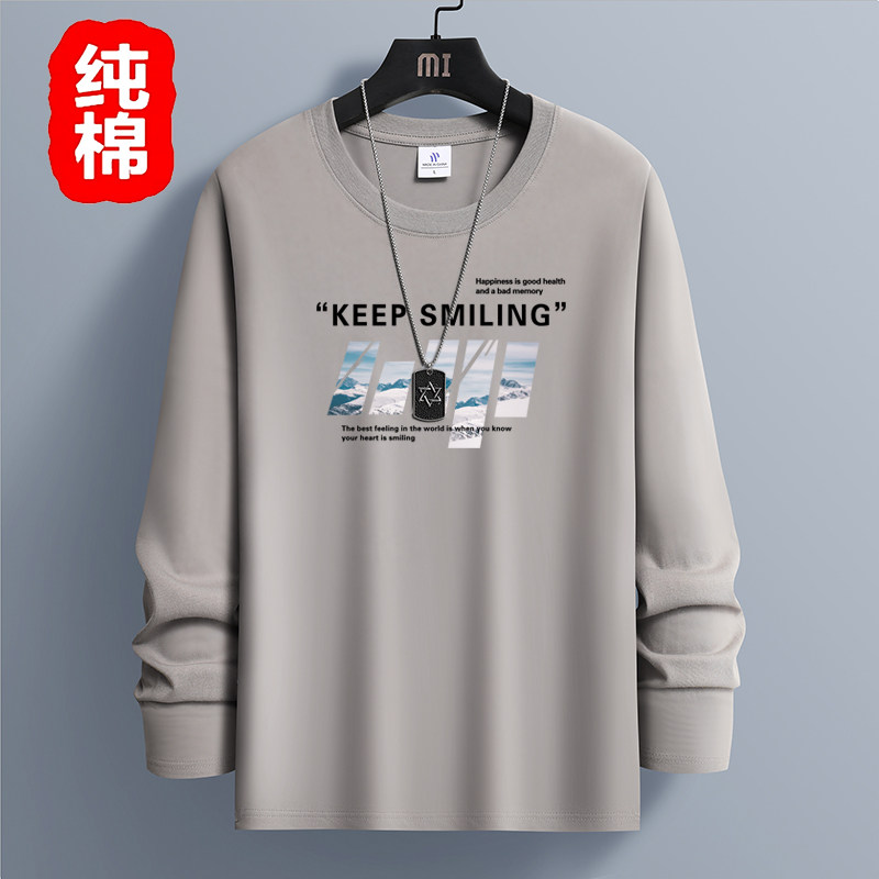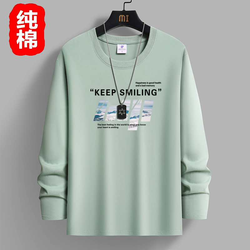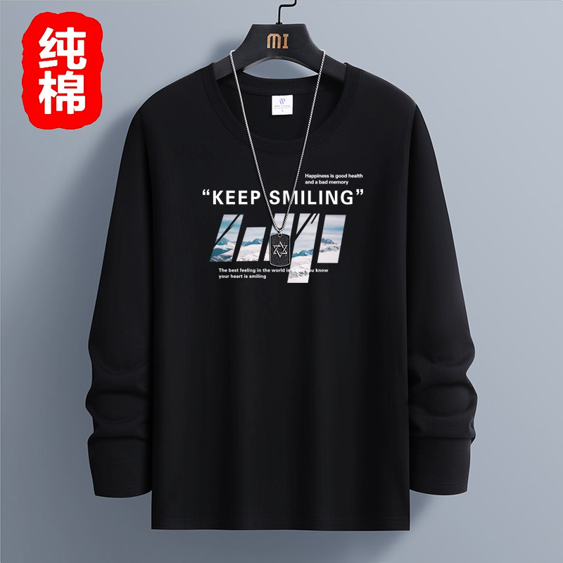 春秋季100%纯棉长袖T恤男宽松韩版白色体恤打底衫青少年秋衣上衣