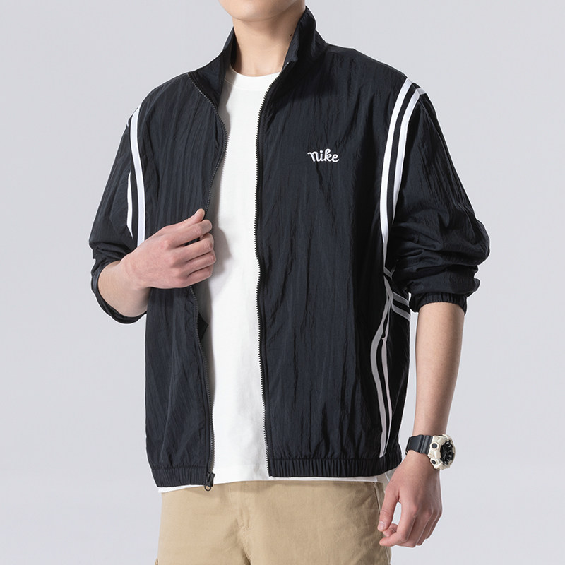 Nike耐克外套男装立领拉链运动外套男款黑色休闲透气夹克上衣外套