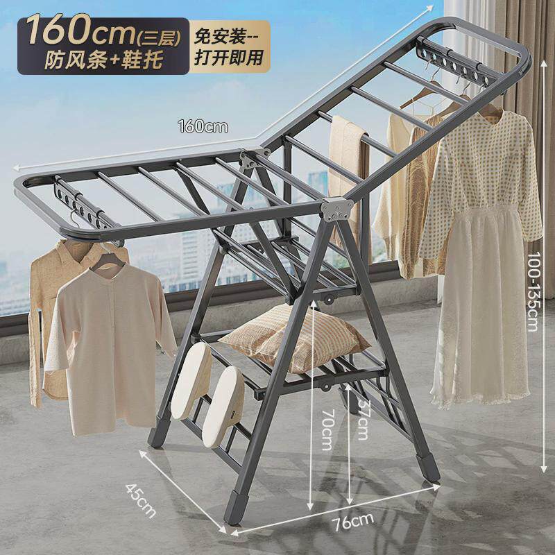 落地式挂衣架室内防风凉衣杆简易晒被子多功能折叠晾衣架阳台晾被