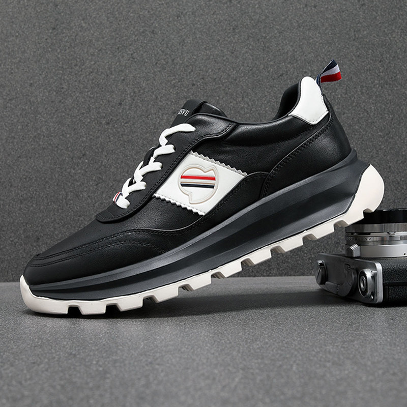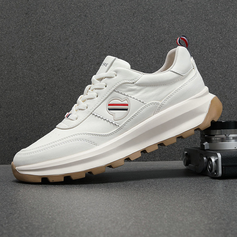 欧洲站2025新款高级感小白鞋男厚底增高透气牛皮时尚百搭休闲男鞋