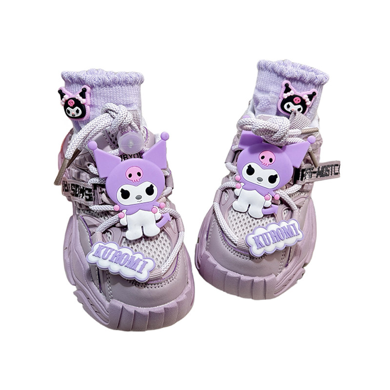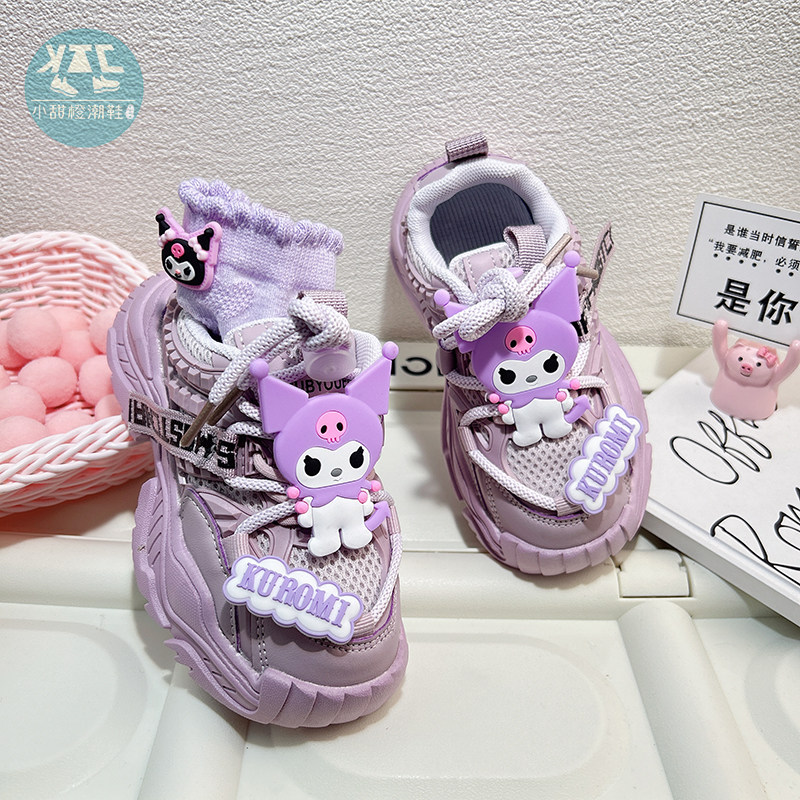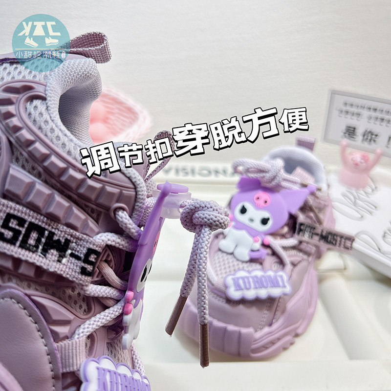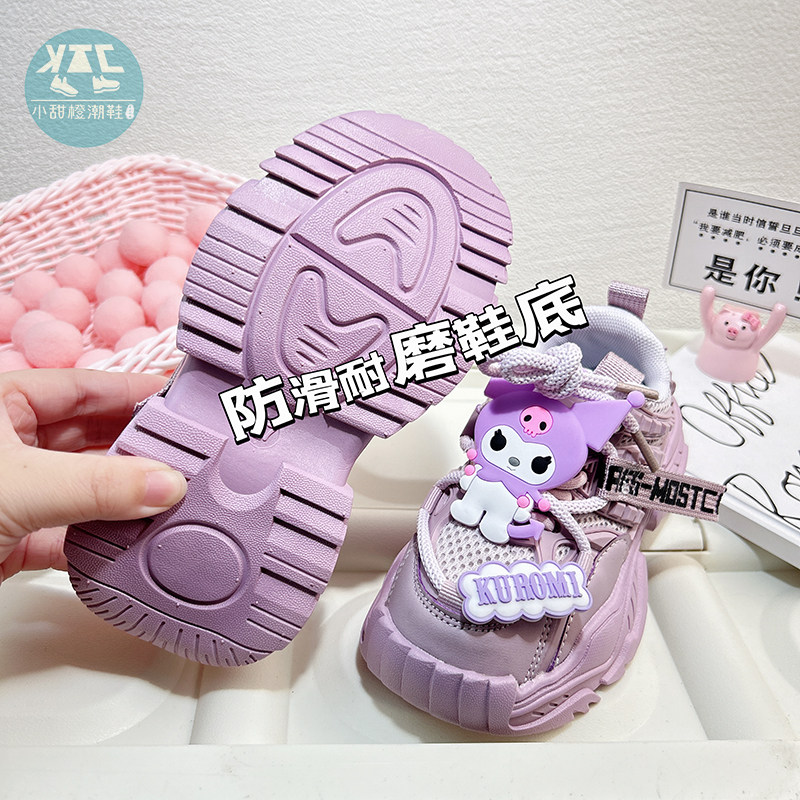 紫色女童运动鞋春秋洋气厚底老爹鞋潮牌女款2026新款轻便双网鞋子