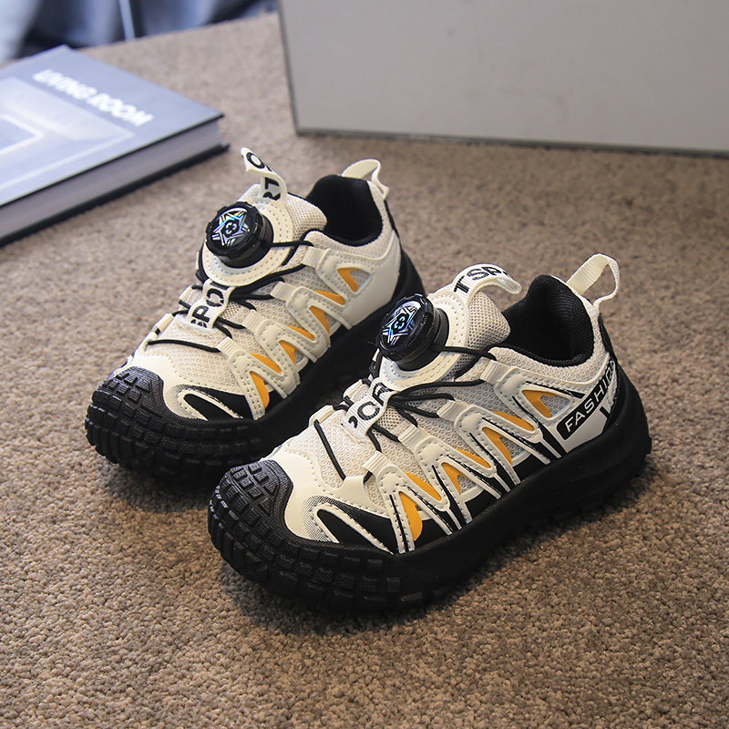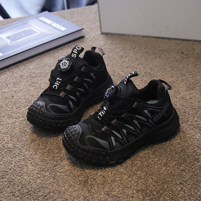 儿童运动鞋软底童鞋网面透气旋转钮扣2025春秋款男童女童鞋黑色鞋