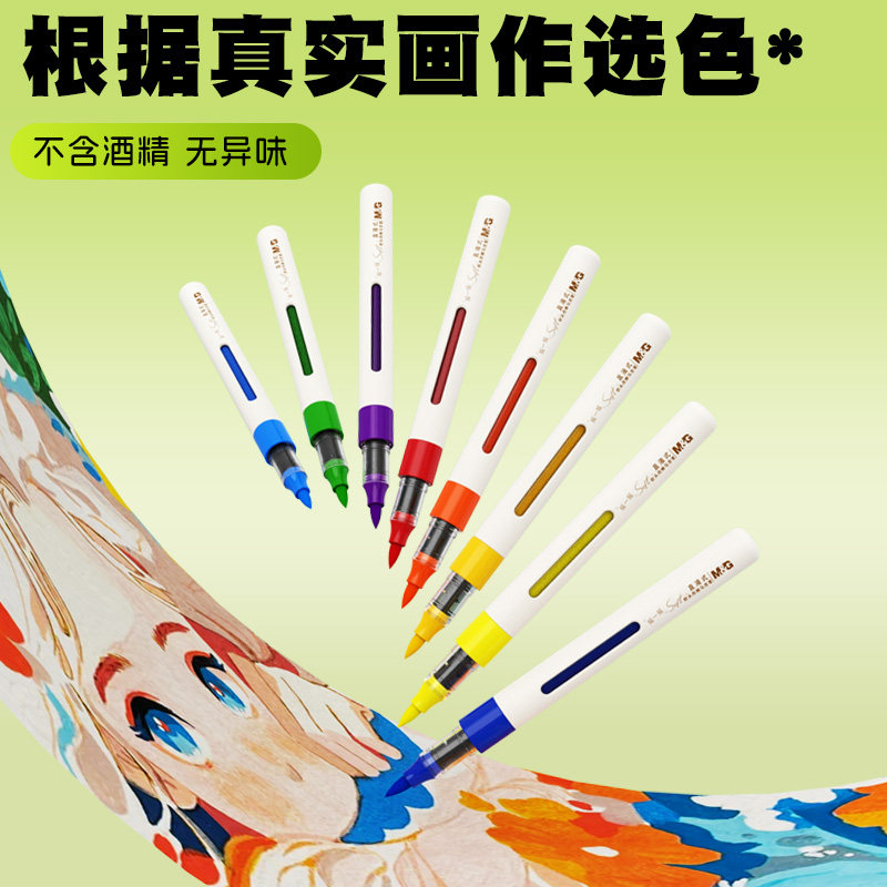晨光国美翻转直液式软头丙烯马克笔24色36色学生美术画画专用马克笔强覆盖大墨量安全速干防水画笔48色涂色笔