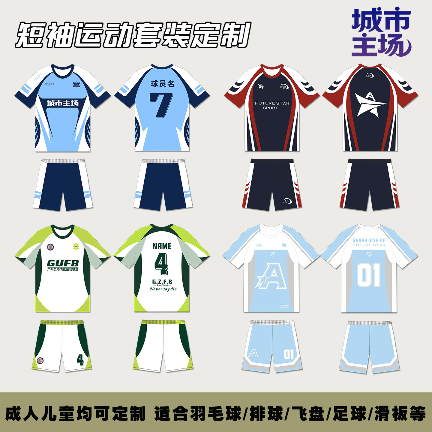 定制短袖飞盘服套装羽毛球排球足球比赛队服运动T恤订做印字图案