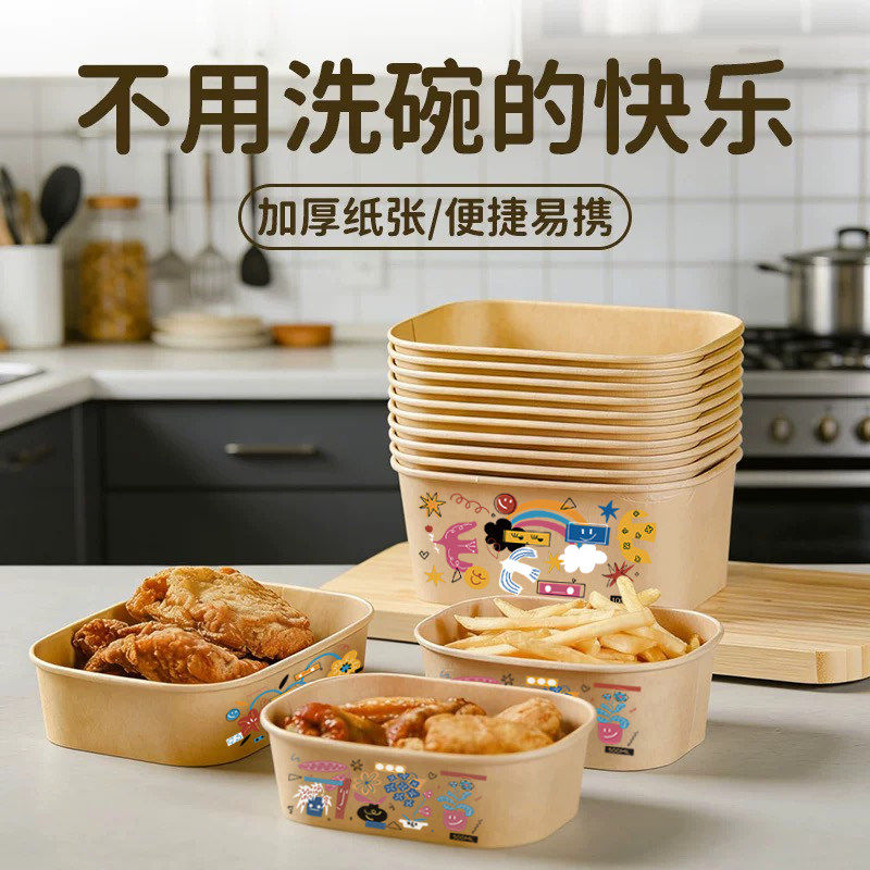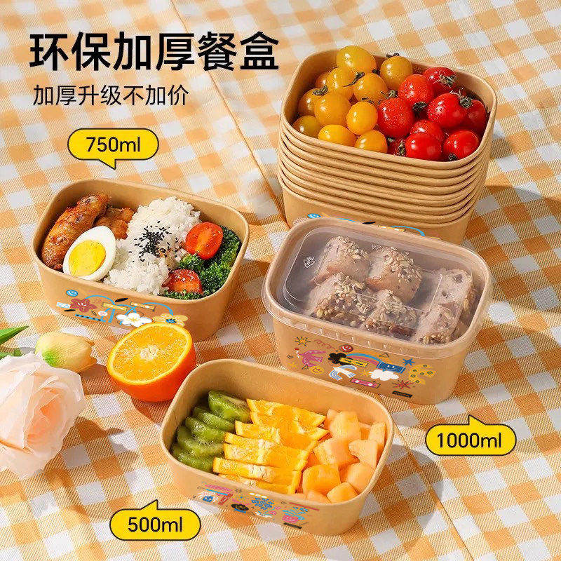 一次性餐盒饭盒牛皮纸打包盒食品级家用可微波加热餐盒牛皮纸饭碗