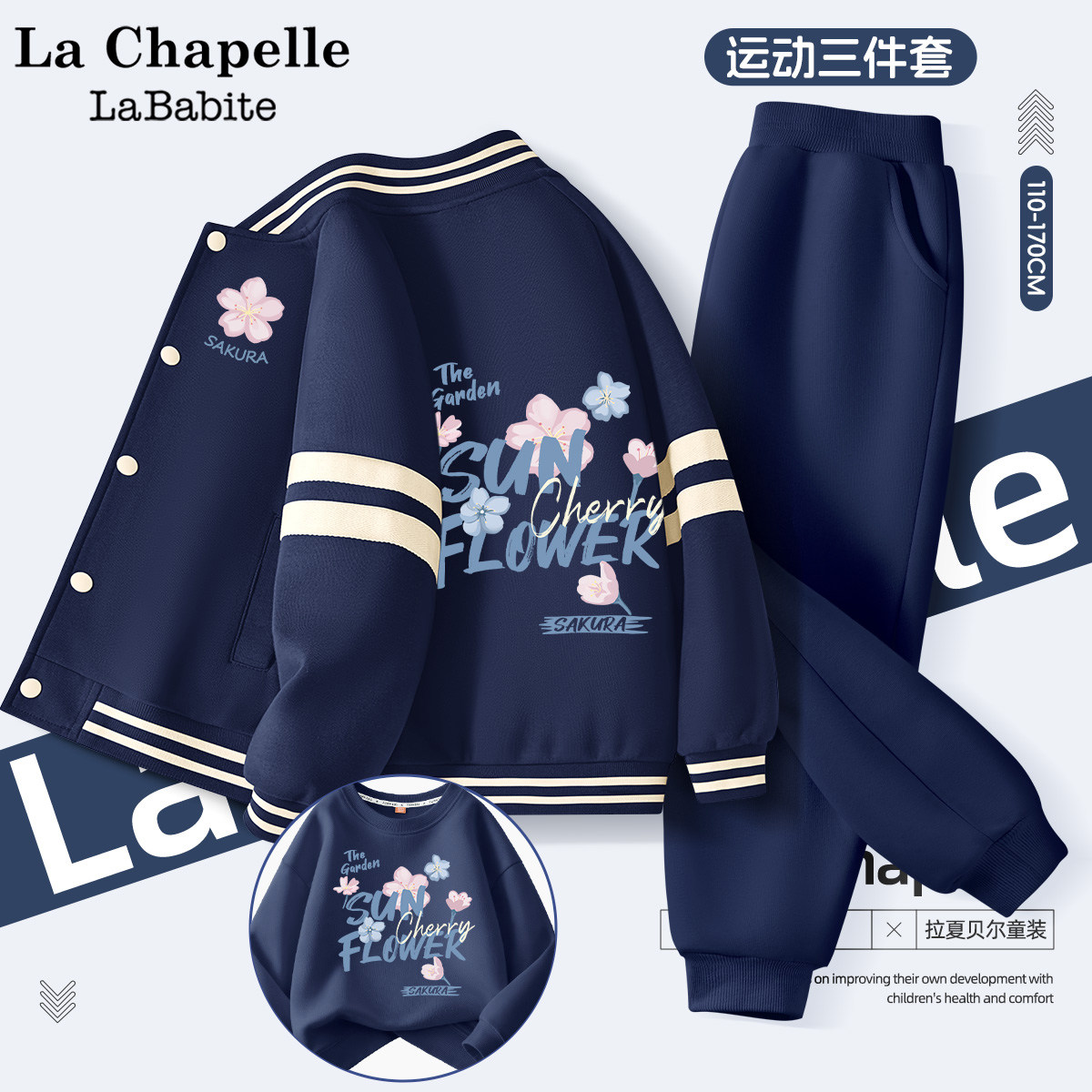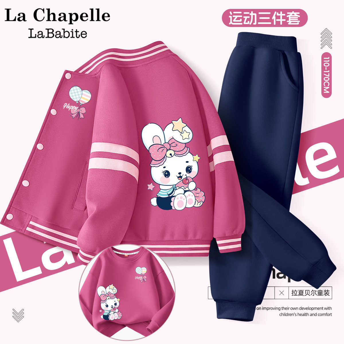 拉夏贝尔女童运动服套装2026新款童装外套卫衣裤子三件套儿童春装