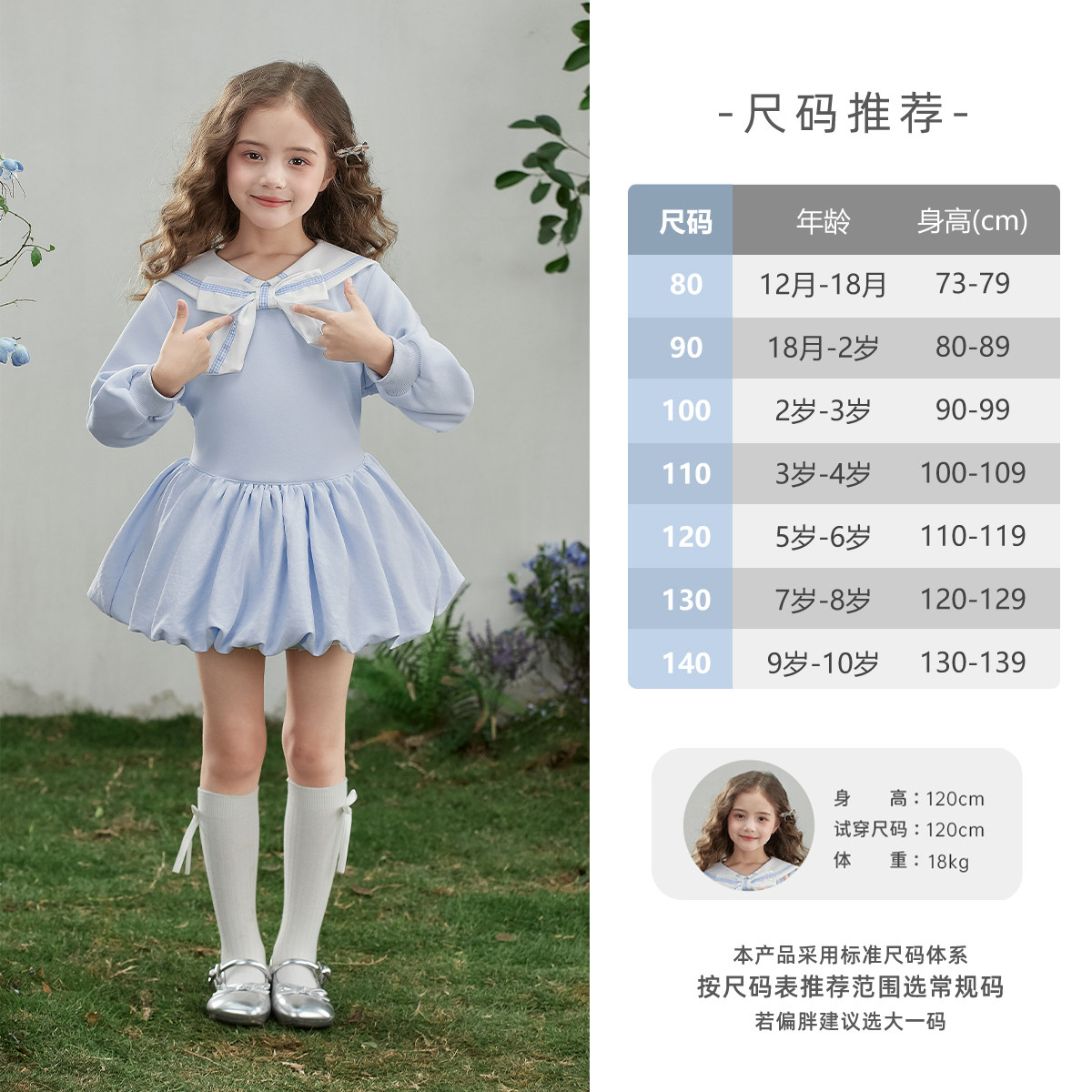 [7A抑菌]女童连衣裙春季新款海军领儿童衣服甜美法式春款宝宝裙子