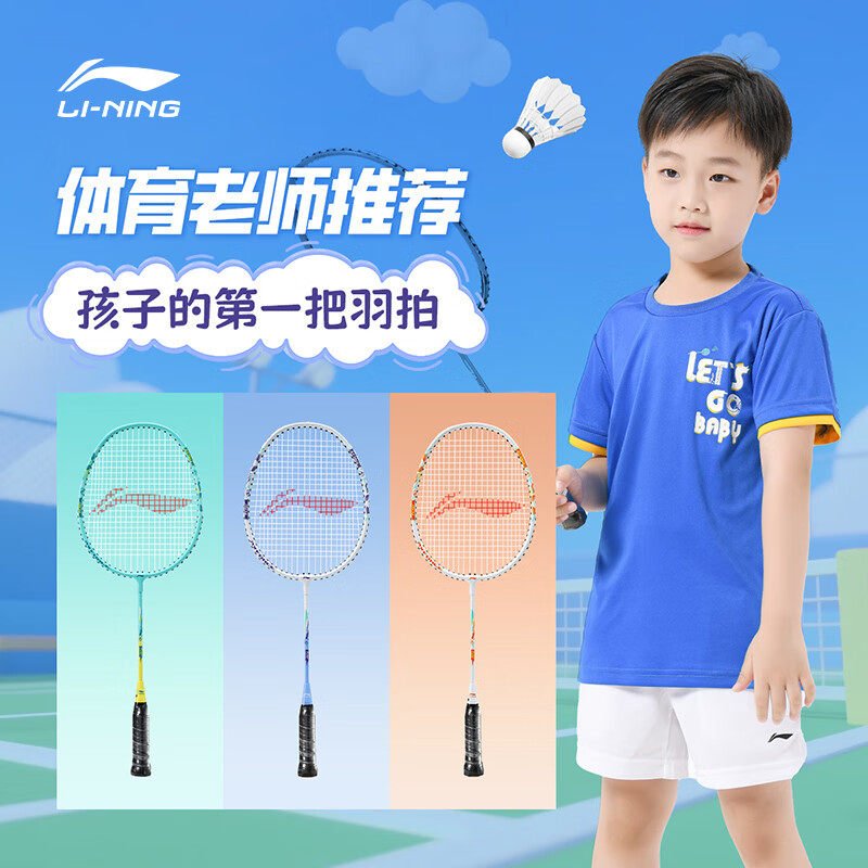 李宁儿童羽毛球拍正品全碳素超轻初学运动拍训练耐打单拍专业套装