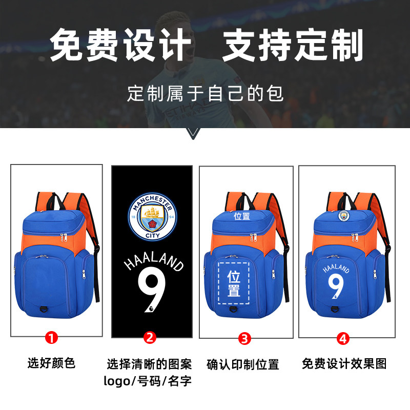 足球双肩包男女情侣篮球排球运动训练装备包学生书包曼城足球背包