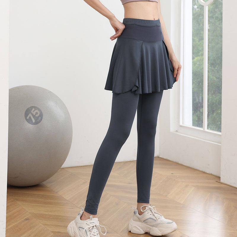 大码假两件高腰瑜伽裤女夏胖mm羽毛球运动健身跑步弹力显瘦长裤裙