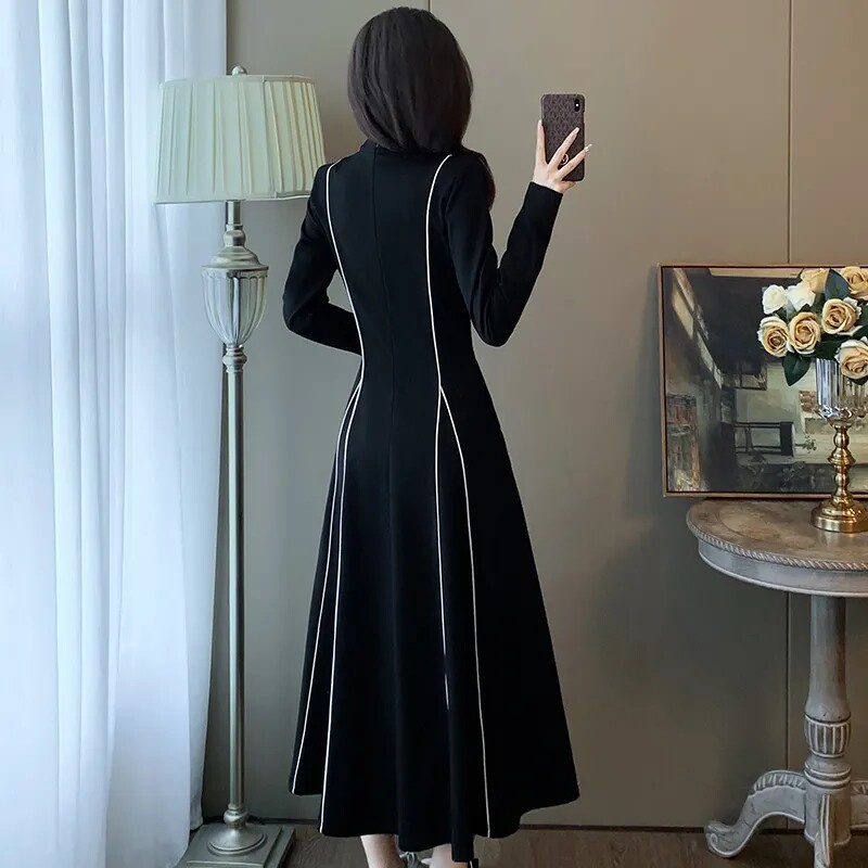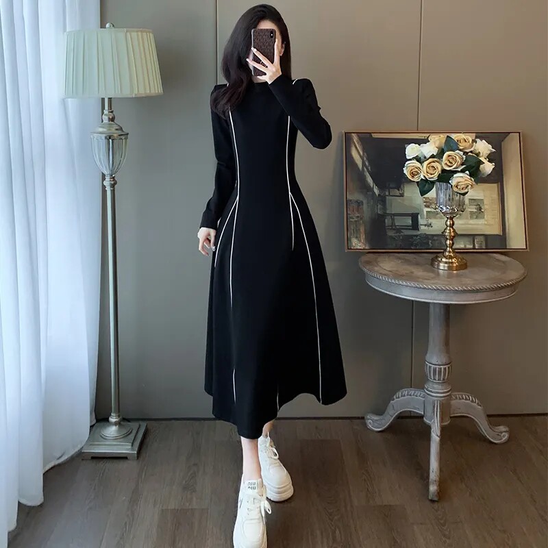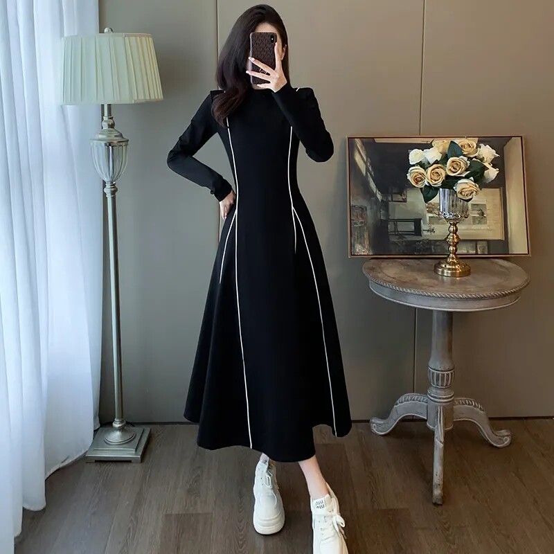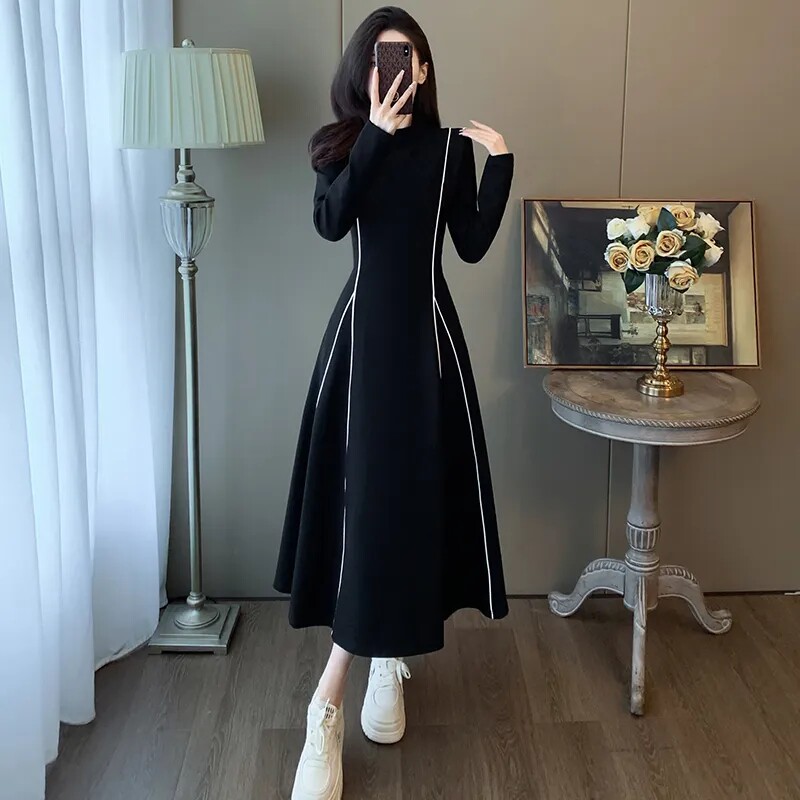 大码女装300斤中长款连衣裙春秋冬2024新款气质显瘦小众小黑裙子