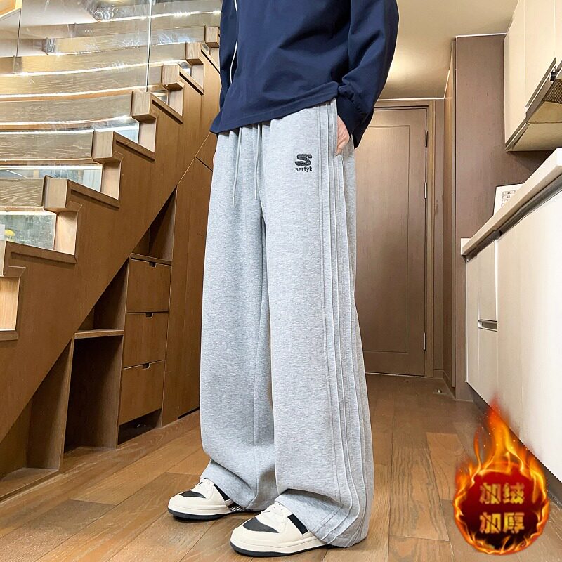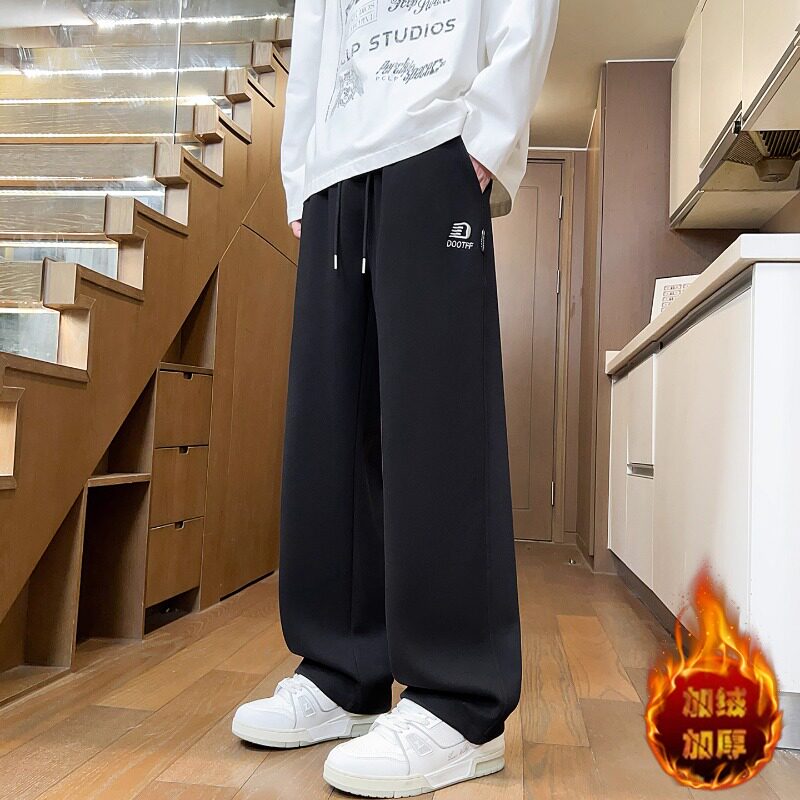 秋冬季加绒长裤男孩初中高中学生加厚休闲裤子青少年大童潮流卫裤