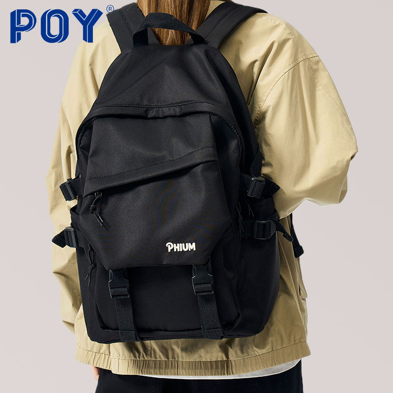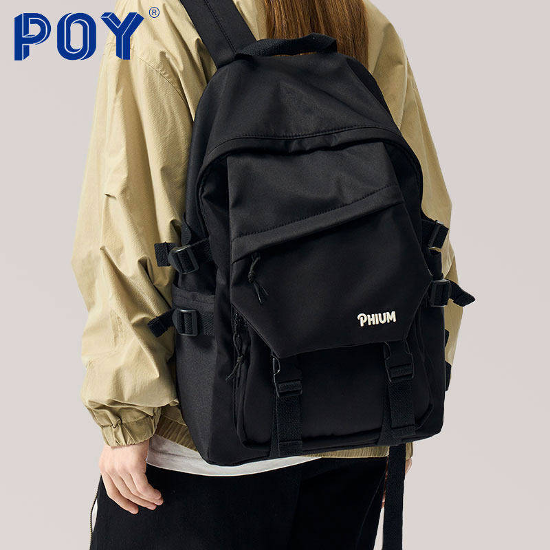 POY®潮牌黑色背包女初中高中生书包轻便电脑包旅行大容量男双肩包
