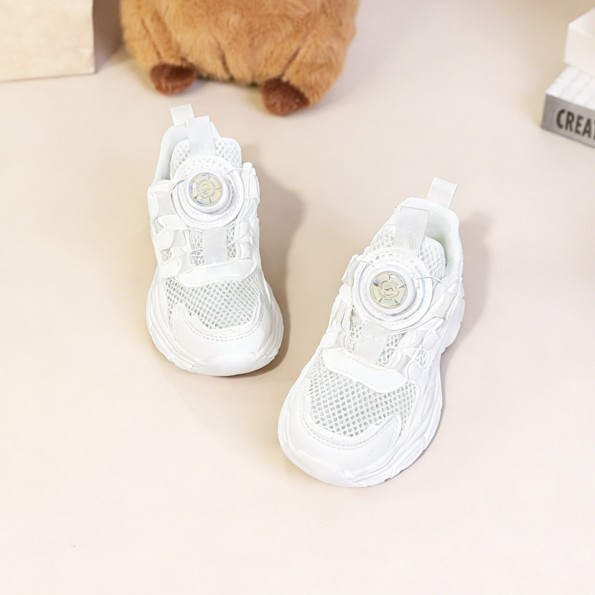 儿童白色运动鞋2026春夏新款男女童学校演出小白鞋透气单网跑步鞋