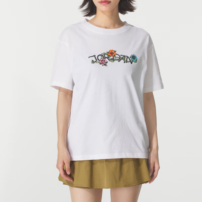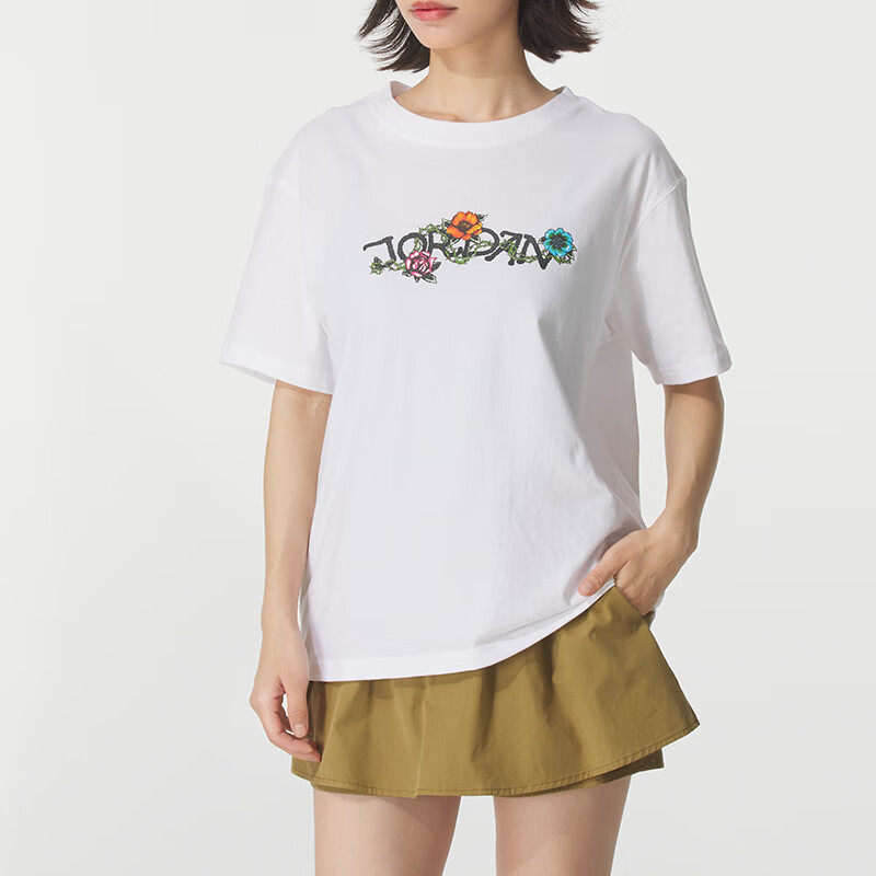 Jordan乔丹白色纯棉短袖女子AJ运动装夏季新款T恤宽松上衣五分袖