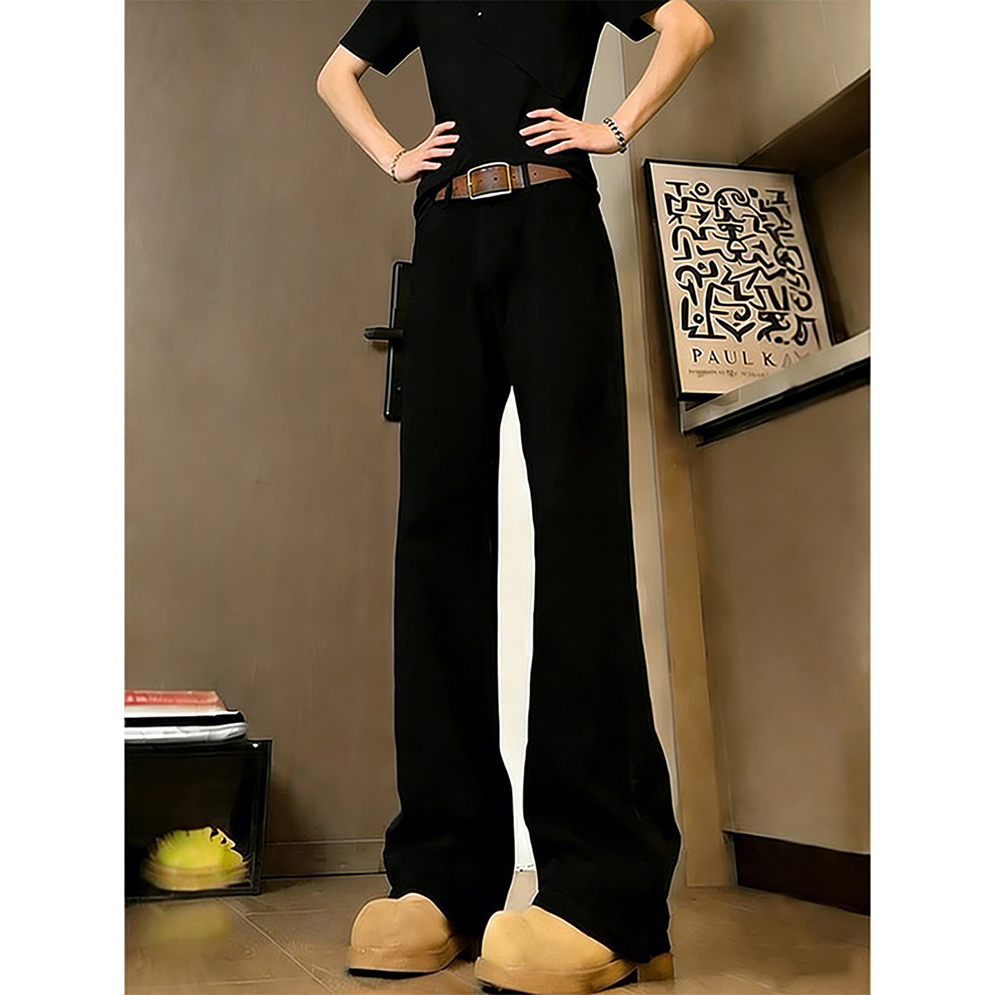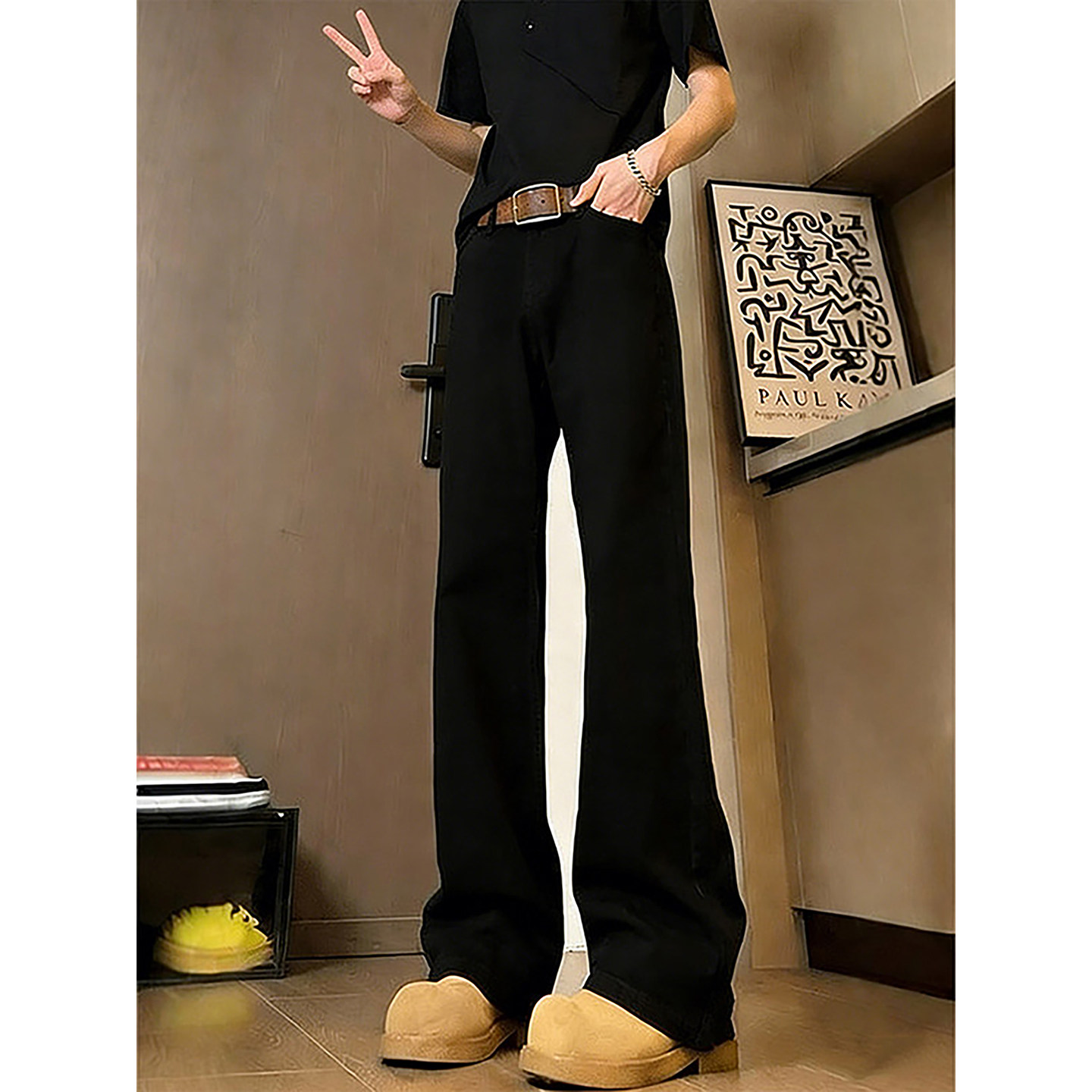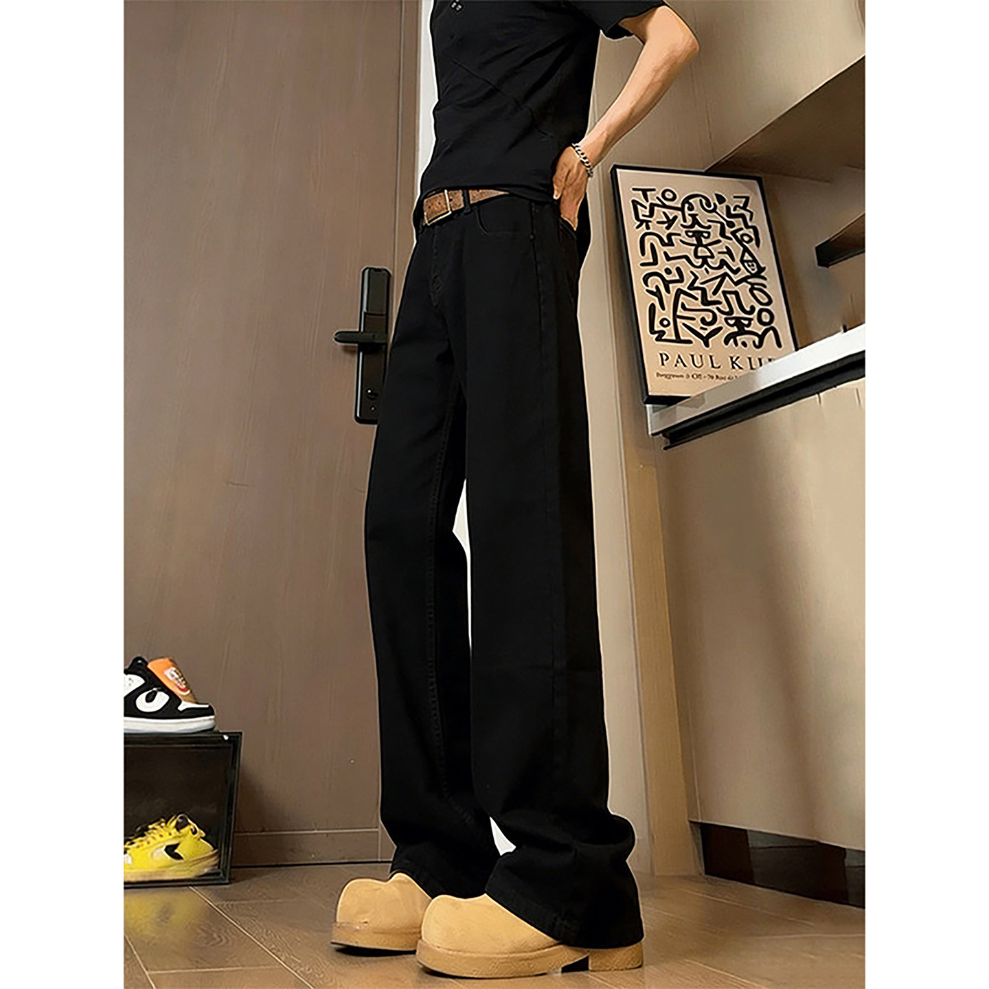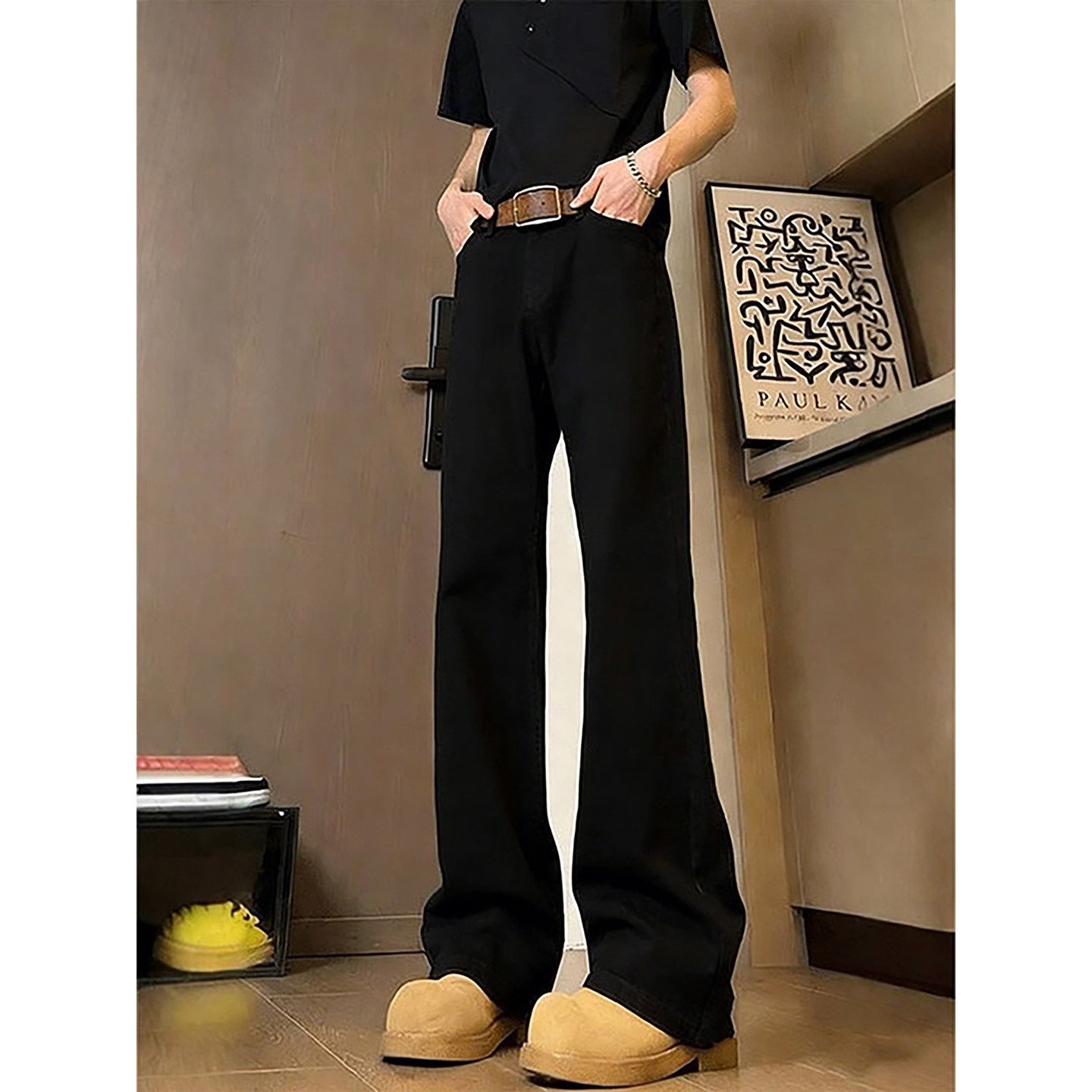 cleanfit黑色牛仔裤男款春季青少年酷帅加绒裤子窄版直筒微喇长裤