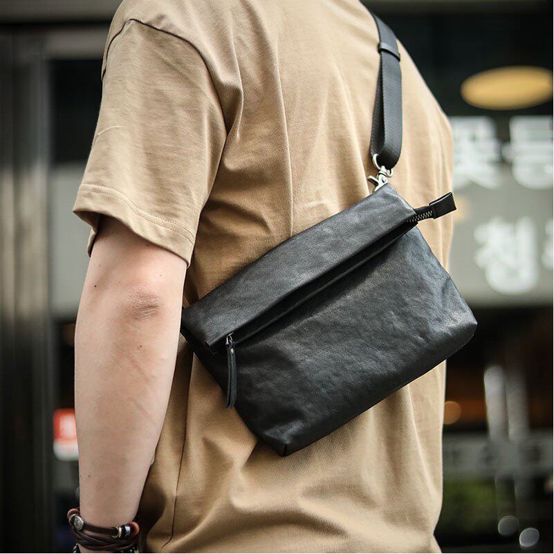 简约通勤斜挎手机包男真皮迷你小包包高级感牛皮小挎包散步单肩包