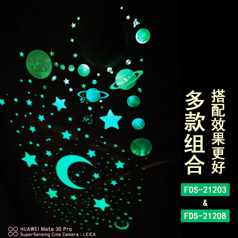 夜光墙贴男孩儿童房间卧室布置装饰荧光贴画宇宙星球星星发光贴纸