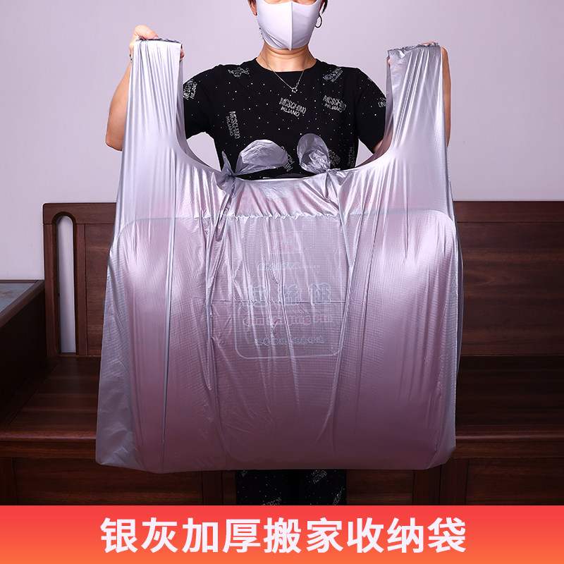 银灰色大号塑料袋手提打包带加厚服装黑色背心式大胶袋搬家装被子