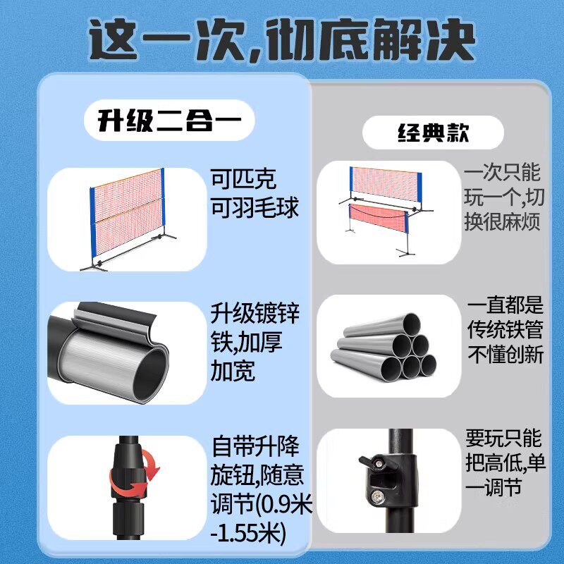便携式羽毛球网架二合一匹克球网架两用款折叠PICKLEBALL网球架