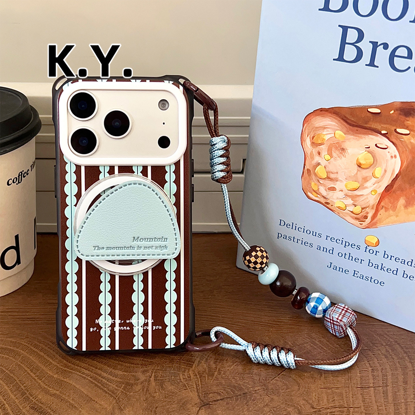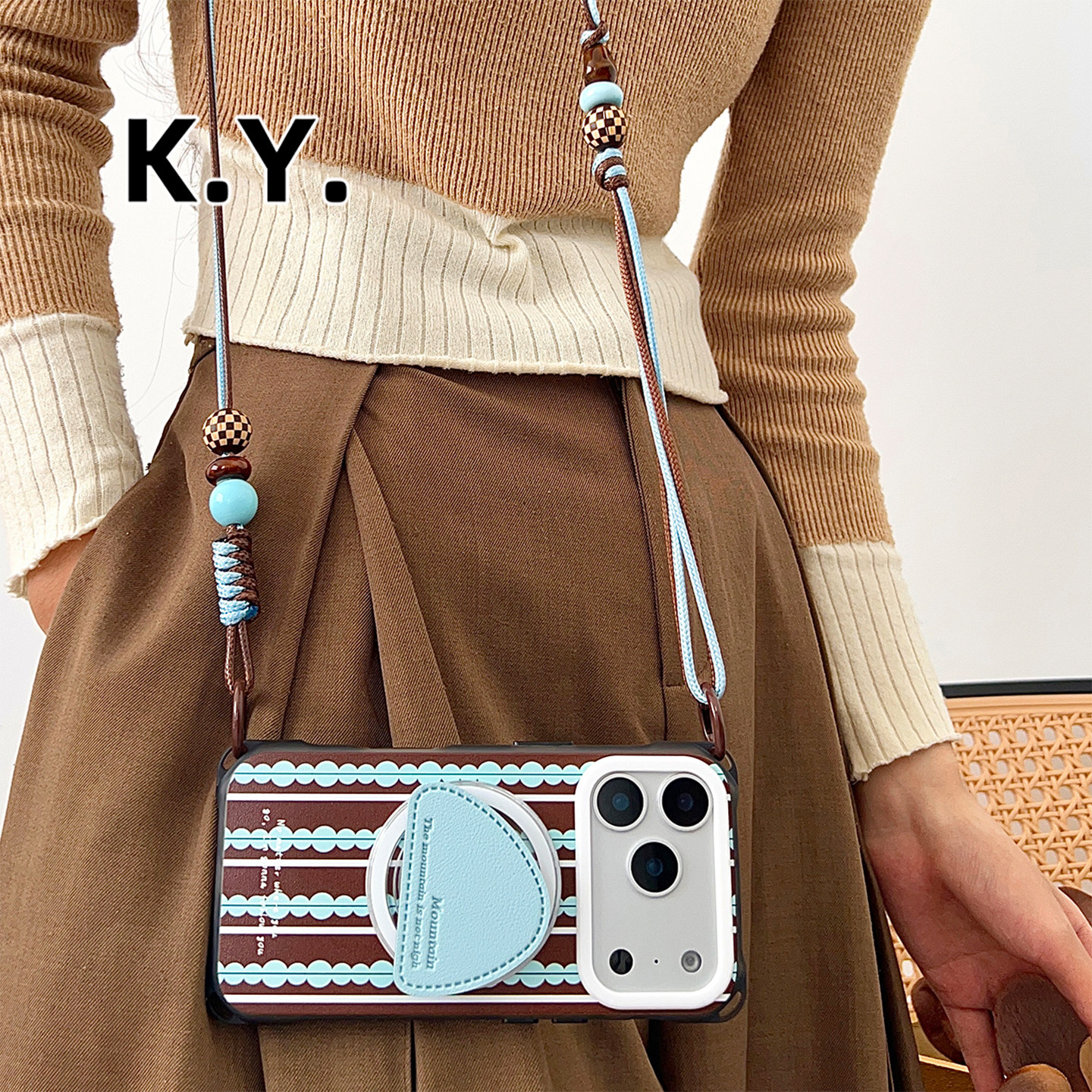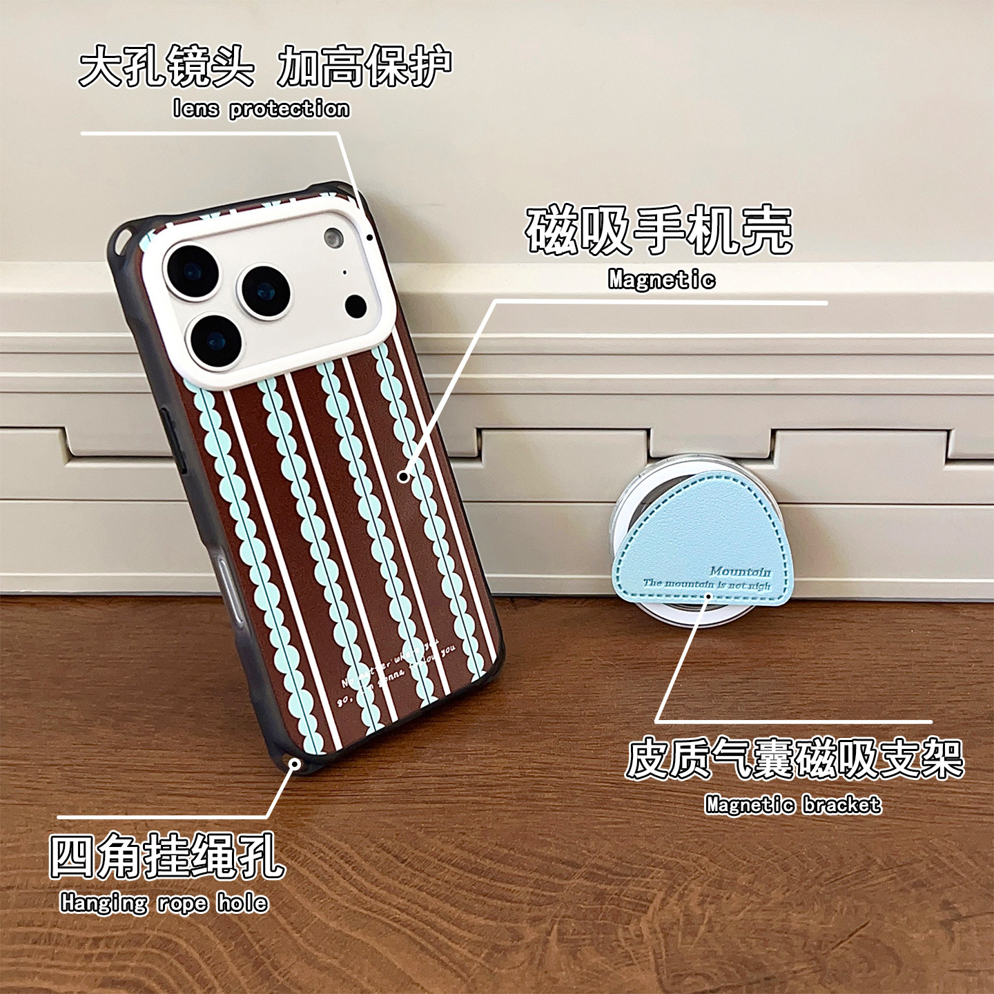 蓝点棕底新款苹果17promax带支架磁吸手机壳挂绳适用华为mate80pro斜挎可背小米17pro保护壳vivox200防摔硬壳