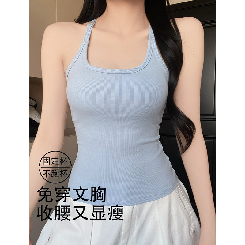 工字吊带背心女款内搭2026夏季新款外穿带胸垫遮副乳挂脖美背上衣