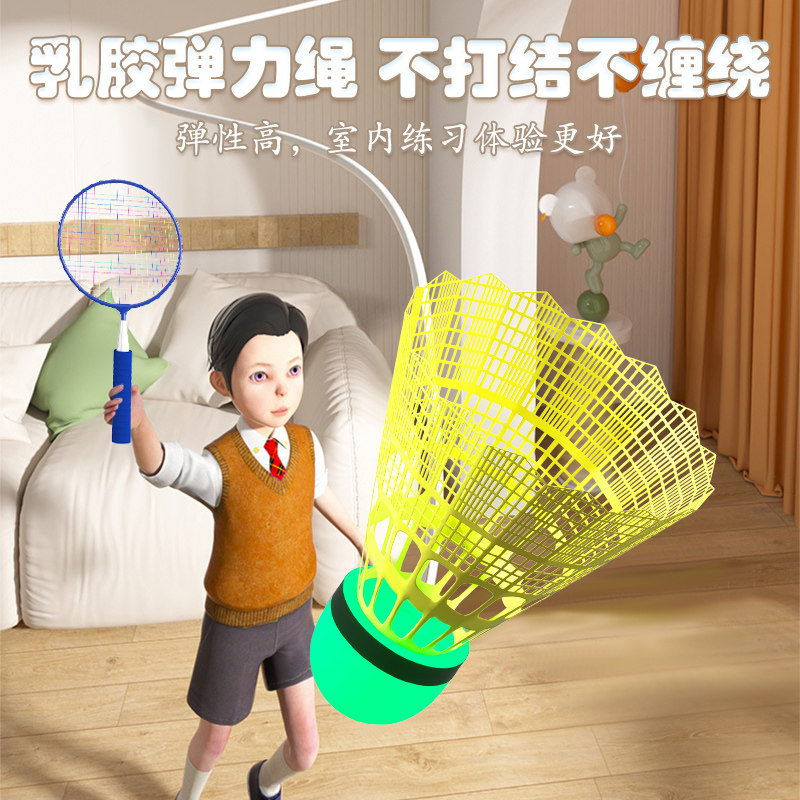 羽毛球单人训练器自动回弹线一个人自打室内儿童练习神器吸盘回旋