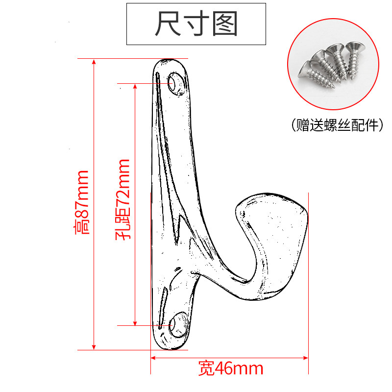 不锈钢挂钩墙面衣柜单个衣钩衣帽钩宿舍浴室金属钩子打孔固定承重