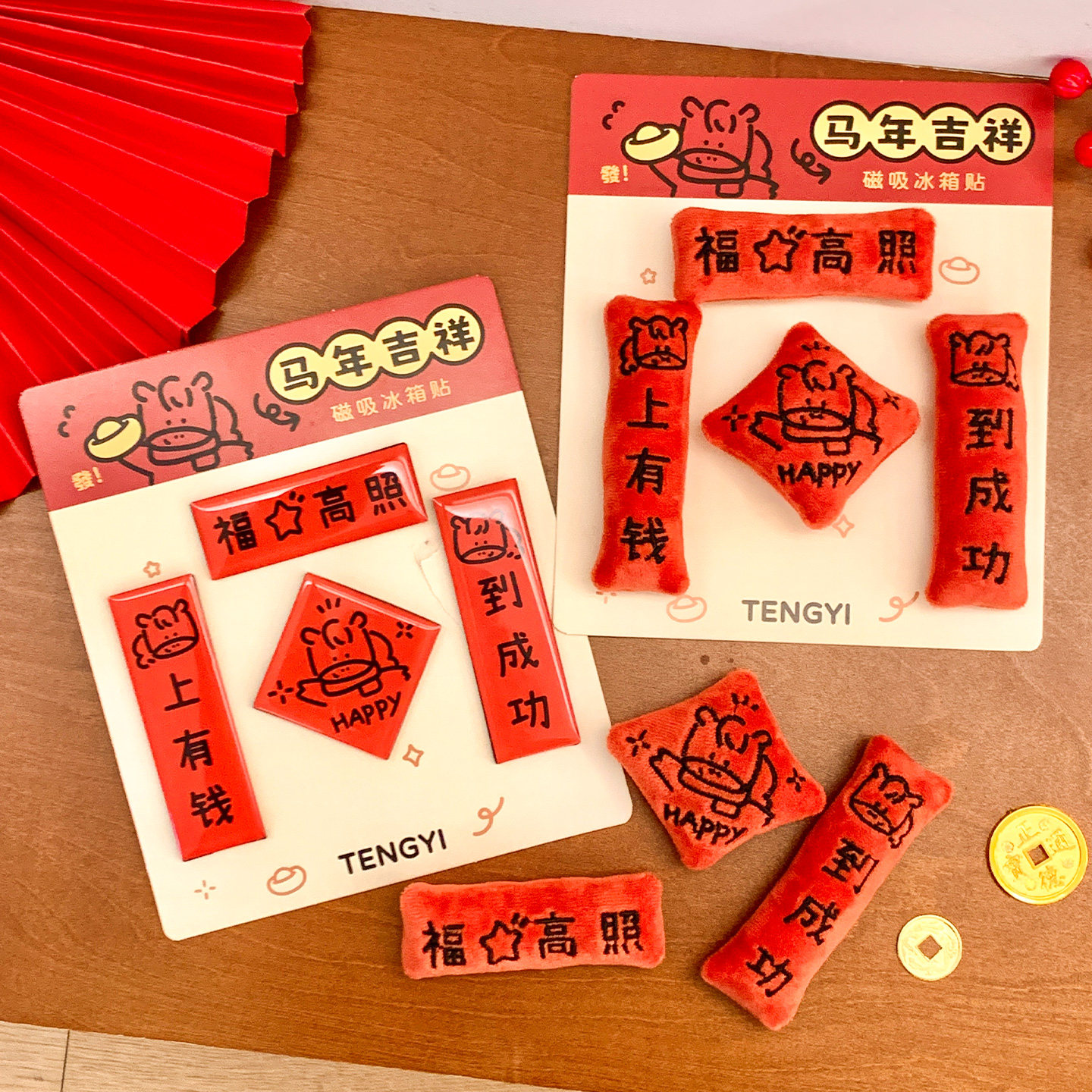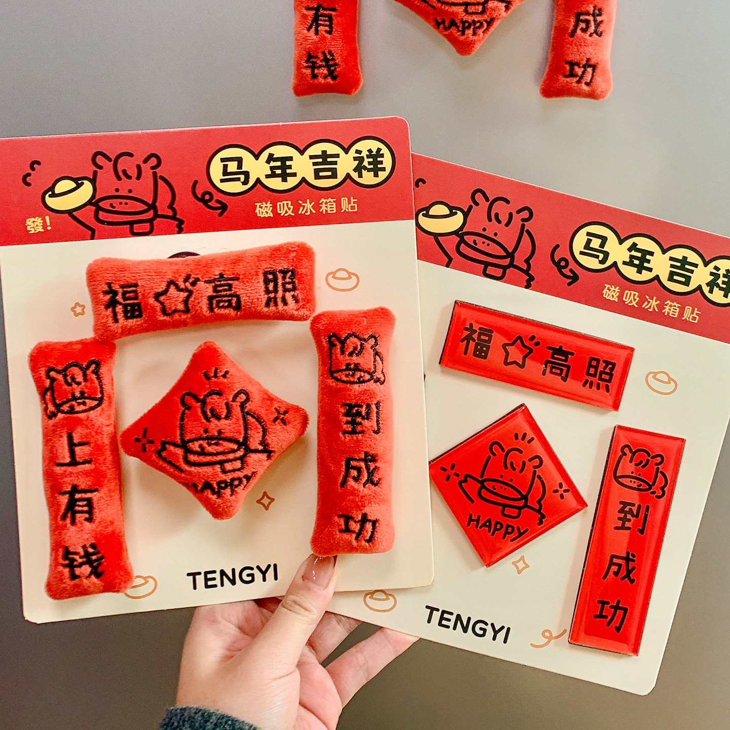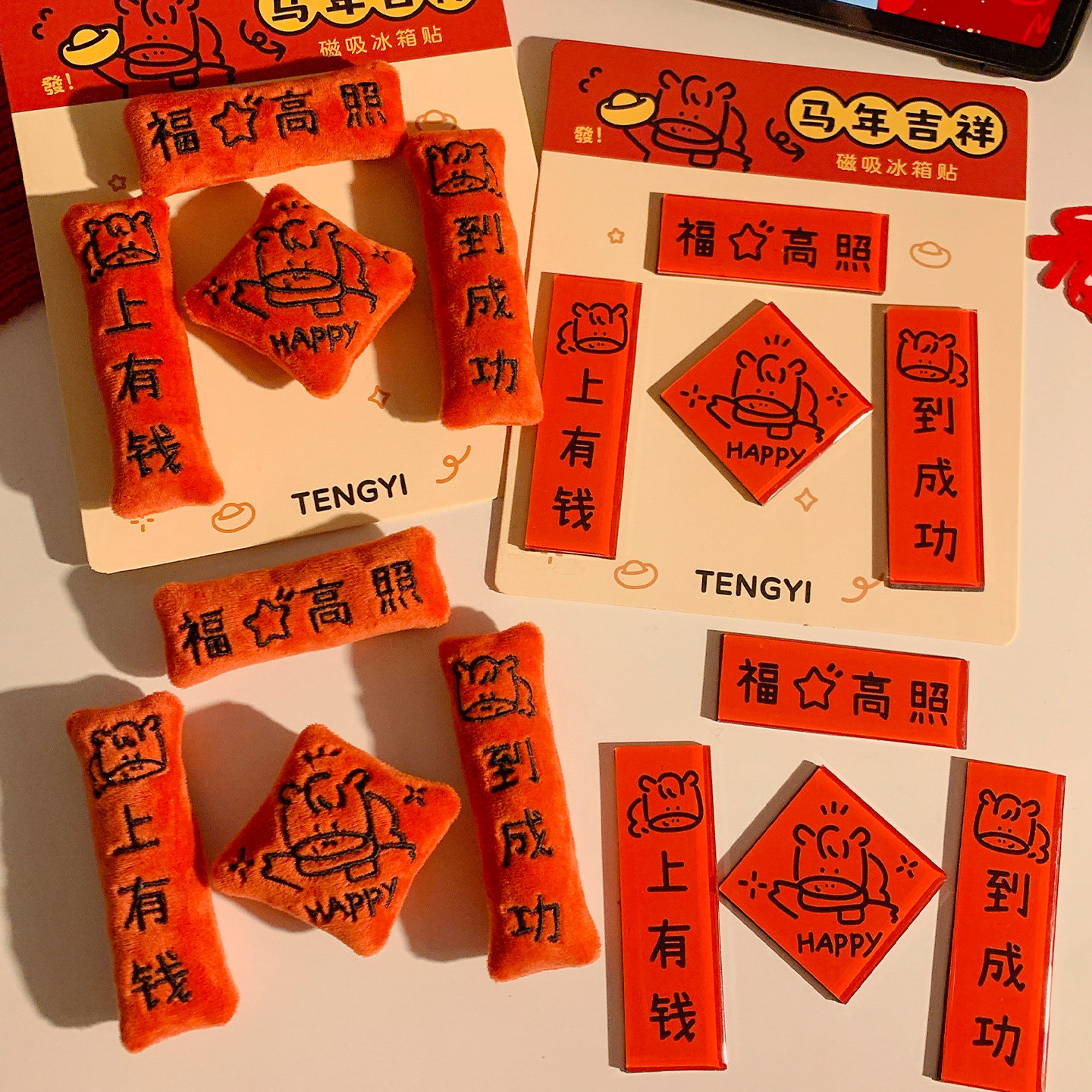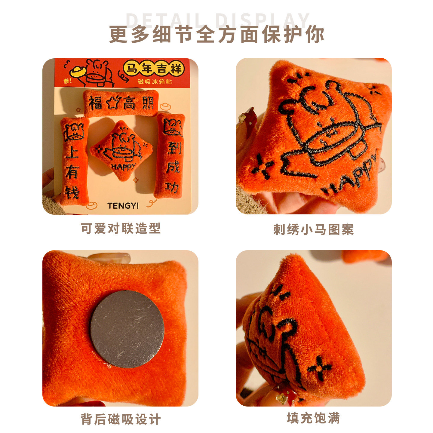 2026马年毛绒磁吸冰箱贴对联创意福字挂饰家用春节创意装饰品礼物