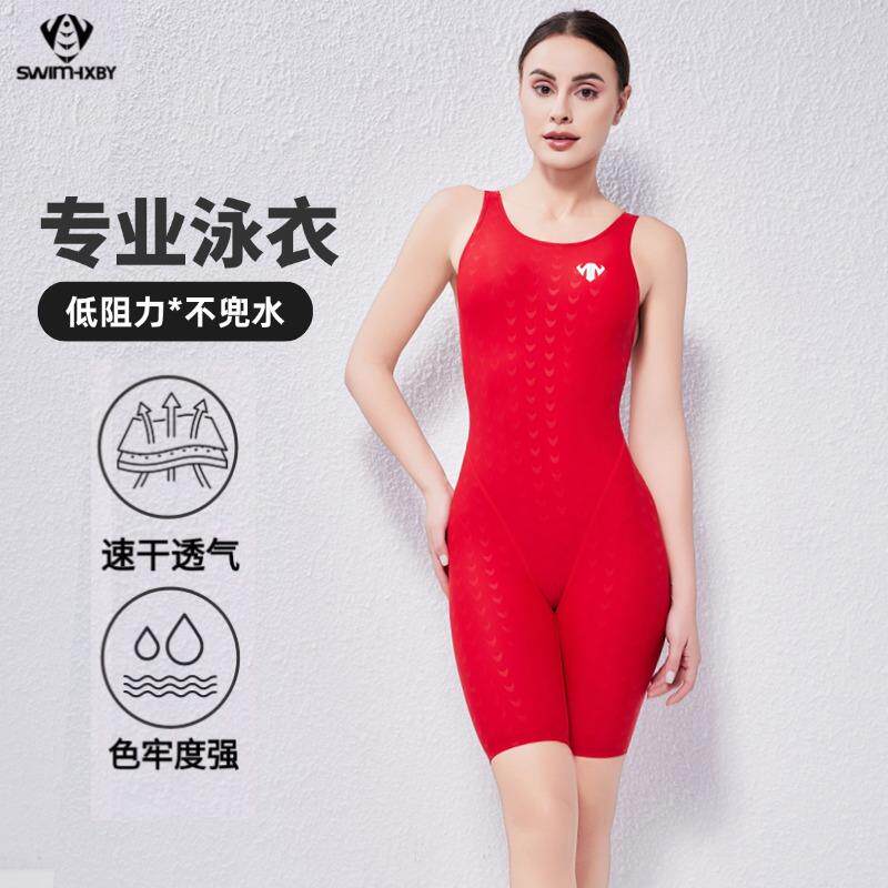 26新款欧美专业女士连体平角泳衣不兜水竞速干泳装无袖游泳衣红色
