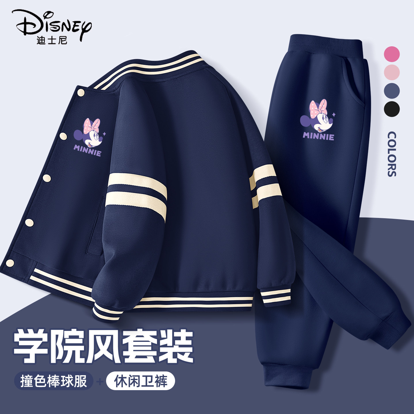 迪士尼女童春套装2026新款藏青中大童棒球服春季外套儿童春装衣服
