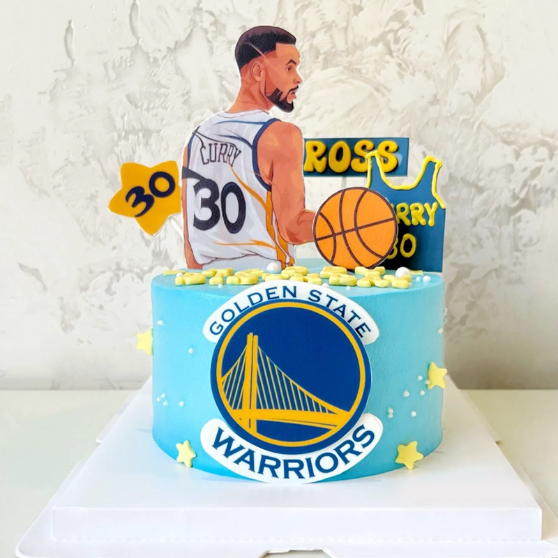 NBA蓝球库里30号球衣糯米纸蛋糕装饰勇士队甜品提摆件插牌定制