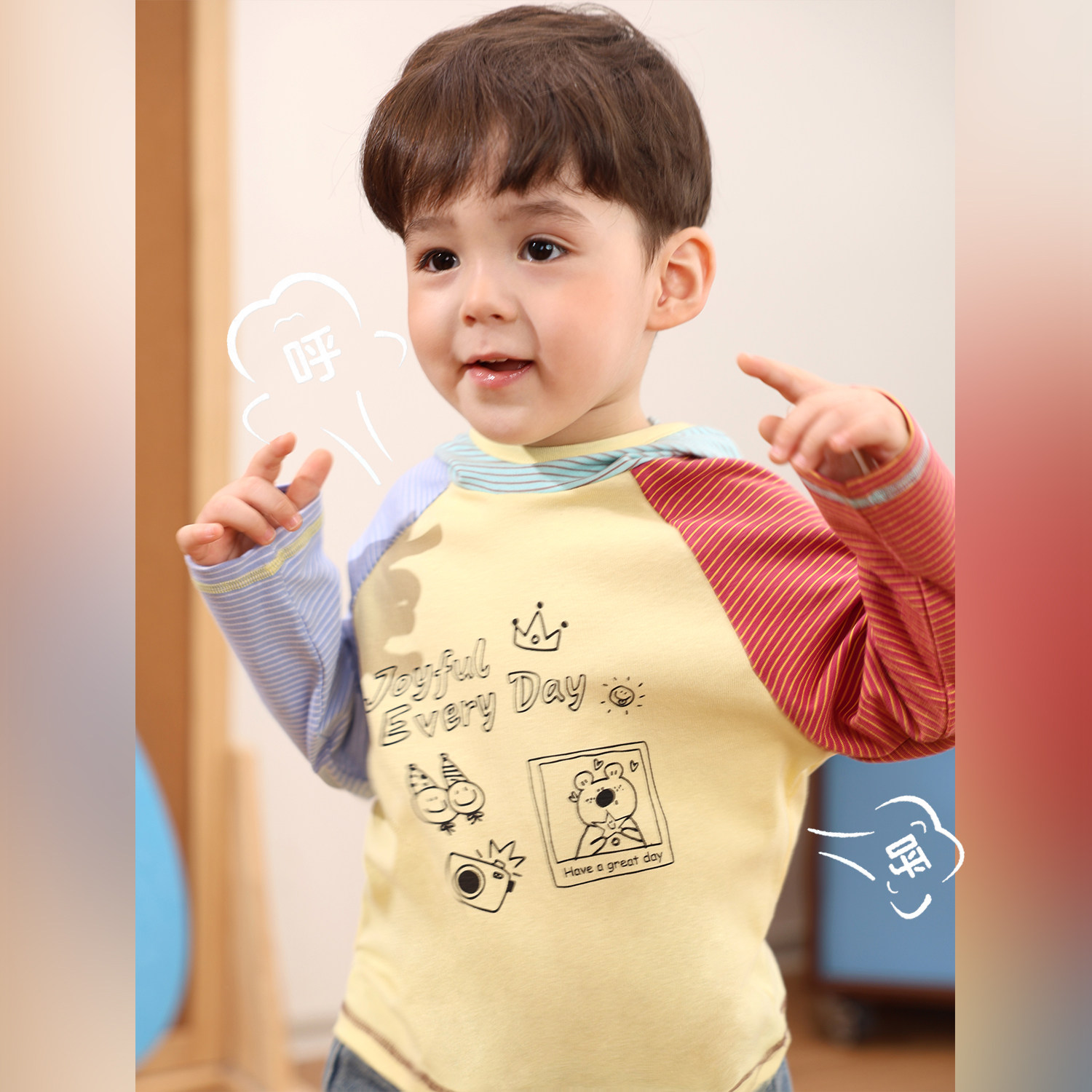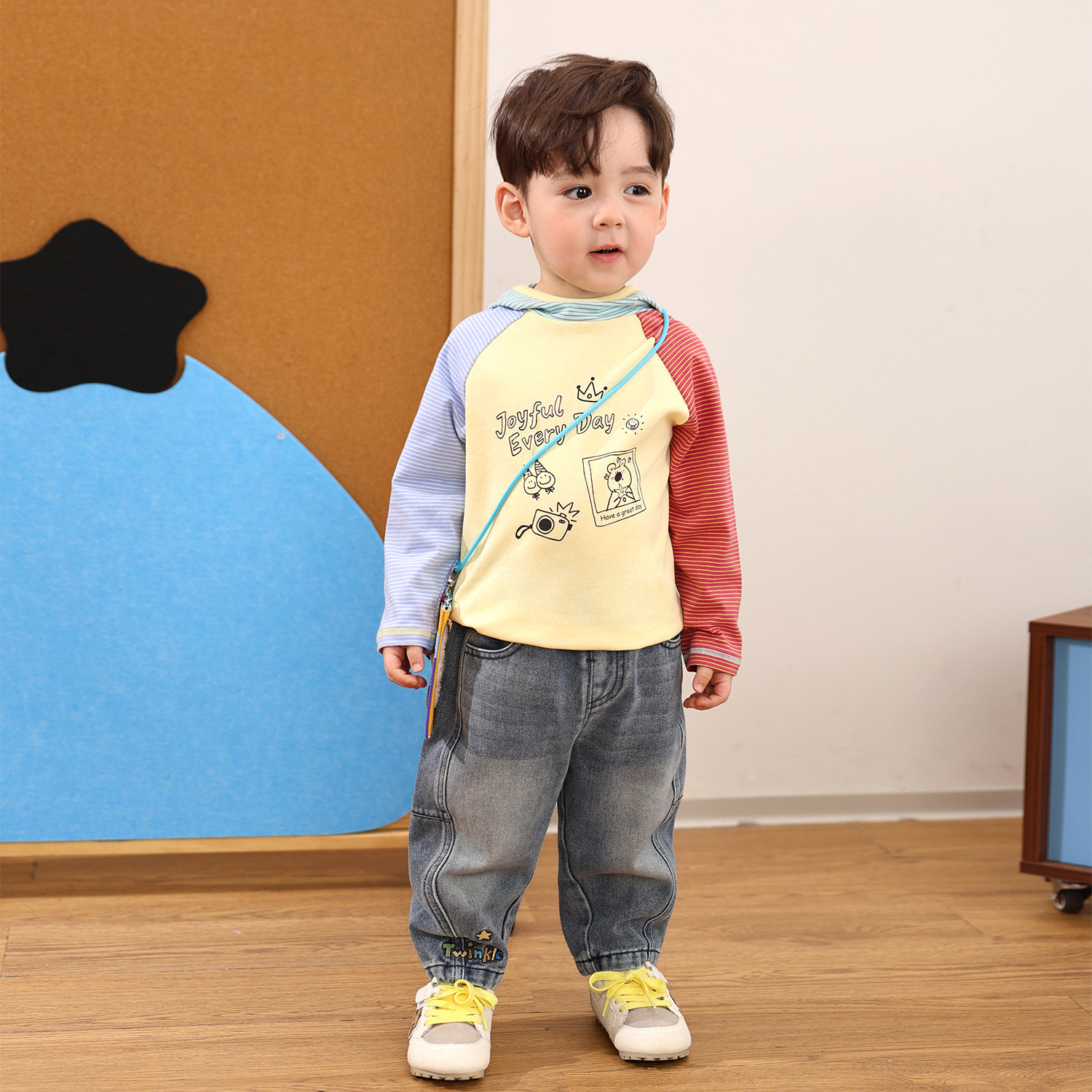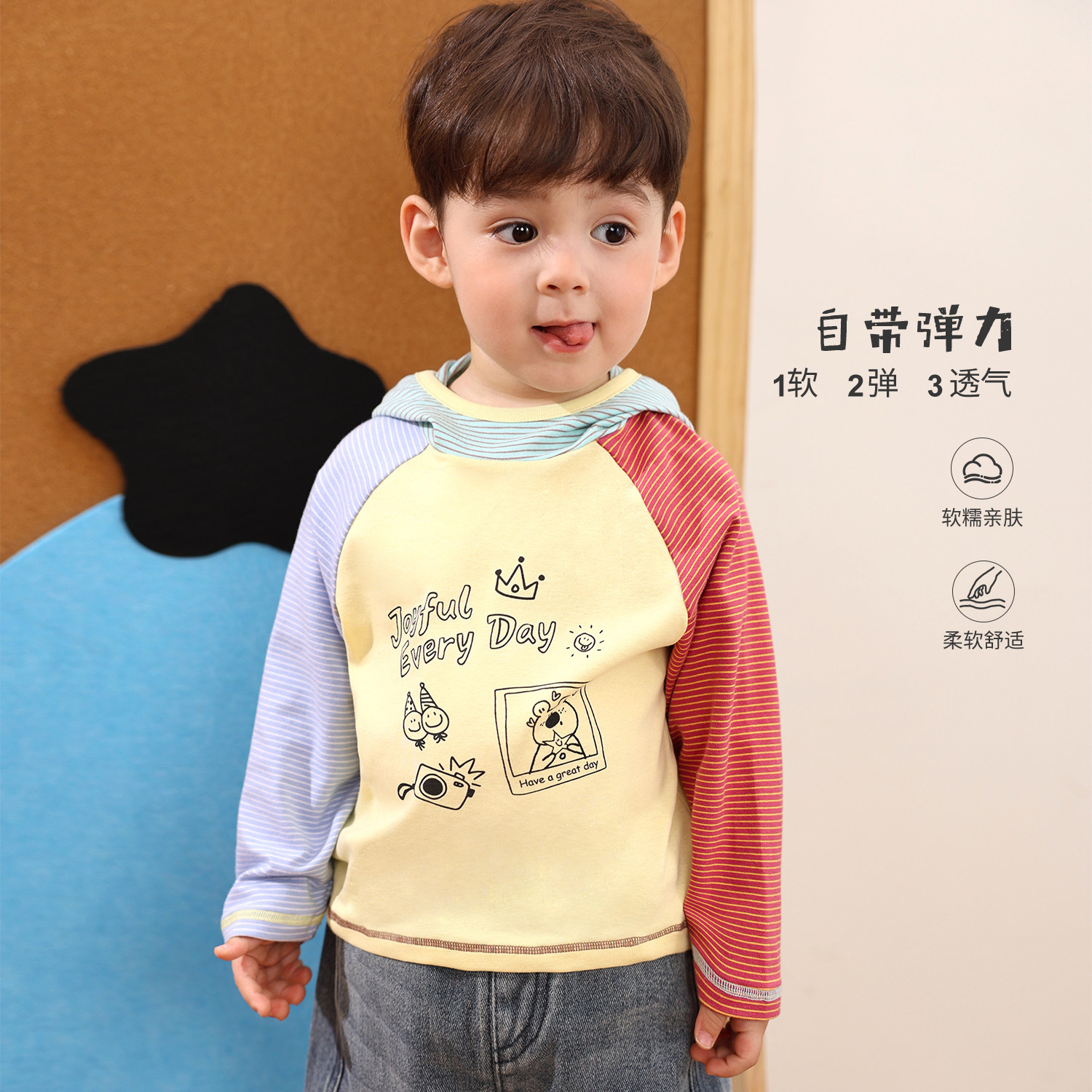 小O爸男婴童 宝宝长袖t恤春秋2026新款婴儿连帽棉质百搭打底衫